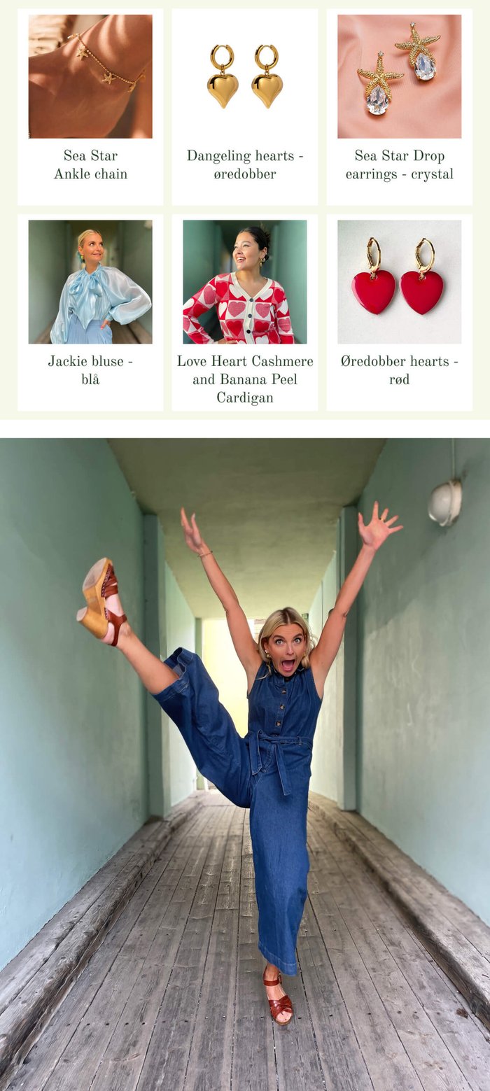 Den korte benlengden inviterer til å smykke opp beina dine, og vi har akkurat fått inn flere nye ankelsmykker fra Caroline Svedbom! Dette med søte dinglende sjøstjerner skal nok få bli med meg på ferie i sommer🤩 Vi har også fått inn noen fantastisk fine øredobbber med en sjøstjerne som "holder" en krystall. FOR en drøm av noen øredobber! Knallfine til å pynte opp både enkel denim eller den svarte playsuiten. Klikk på bildet og kom rett til en samling med det perfekte tilbehøret for disse buksedressene🫶