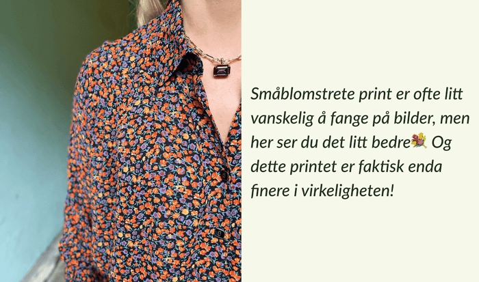 Leila-blusen fortjener en egen spalte i ukas brev, for dette printet falt vi pladask for, og det passer til nesten alt vi har i butikken denne sesongen🙌 Stoffet er 100% viskose, og den har en lett nesten chiffon-aktig følelse. Det er ikke rart vi falt for denne, for Leila er jo veldig i stil med våre japanske vintagebluser. Både det småblomstrete printet og de fine emaljerte knappene gir oss herlige vintage-vibes, men i motsetning til mange vintagebluser er denne skikkelig romslig og god i størrelsen! Både Caterina og jeg har gått en størrelse ned i denne. Jeg bruker 34 og Caterina har på seg 42, men kunne også brukt den i 40, så her har du en bluse som fint vil passe opp til en størrelse 50 i hvert fall! Blusen er så deilig og avslappet og her kan du velge hva du liker best, å bruke den utenpå eller stappe den oppi bukse, eller skjørt.
