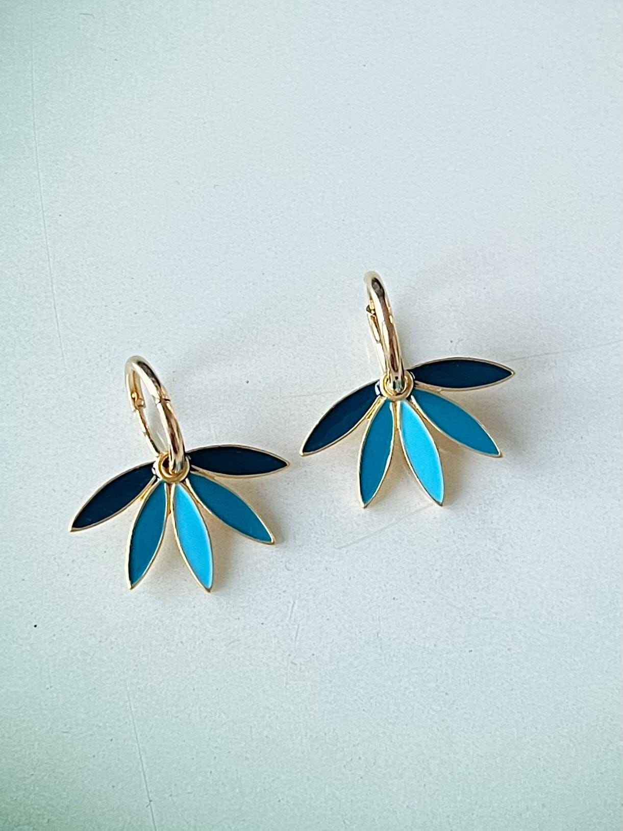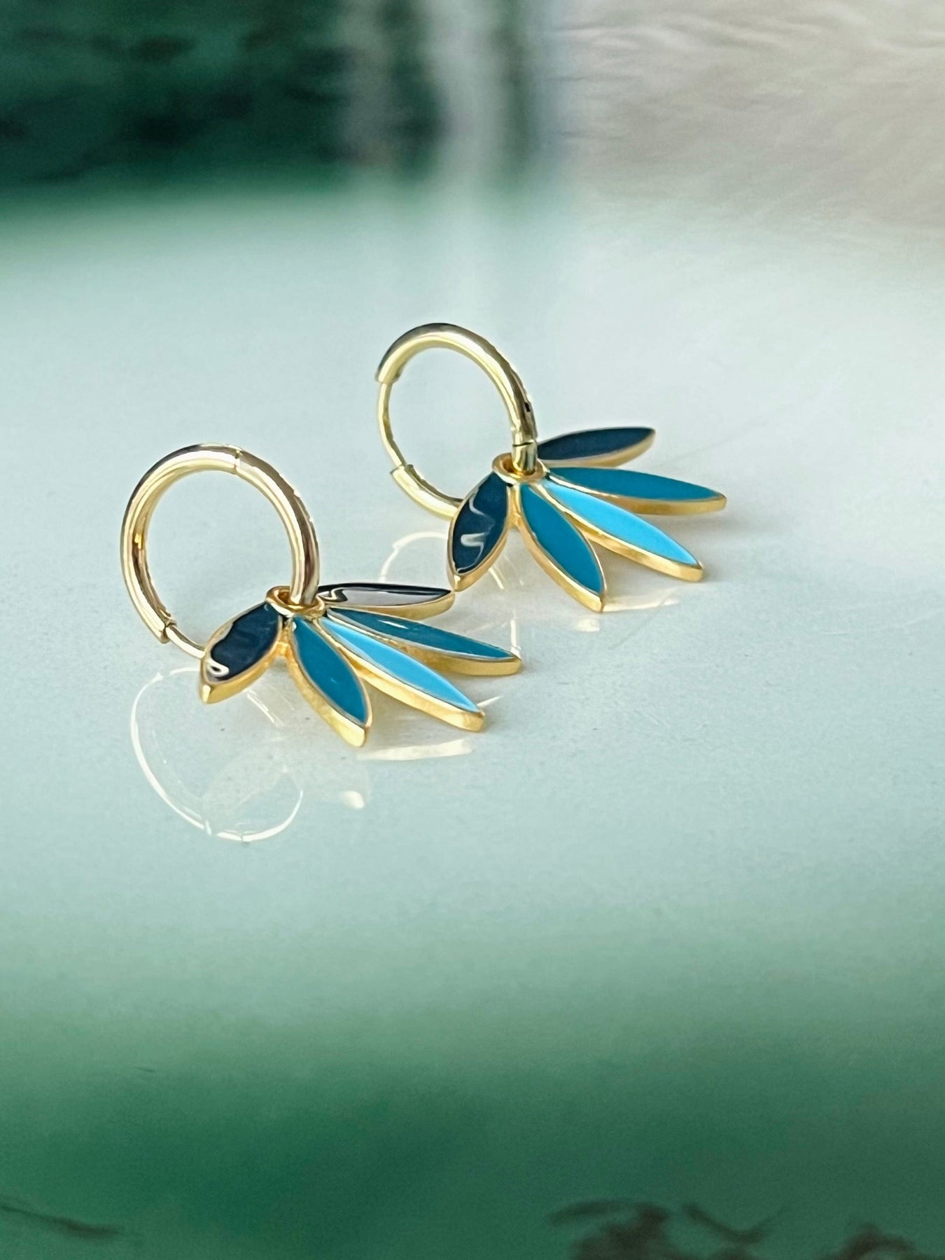 Superstilige, hengende øredobber med blanke, emaljerte blader😍 Vi elsker dette designet fra Urban Hippies og denne nydelige varianten i blågrønne fargetoner gir en lekker og bohemsk look som raskt har blitt Dianasjentenes hverdags-favoritt! Nikkelfritt og etisk produsert, blir ikke bedre enn det🫶🏼