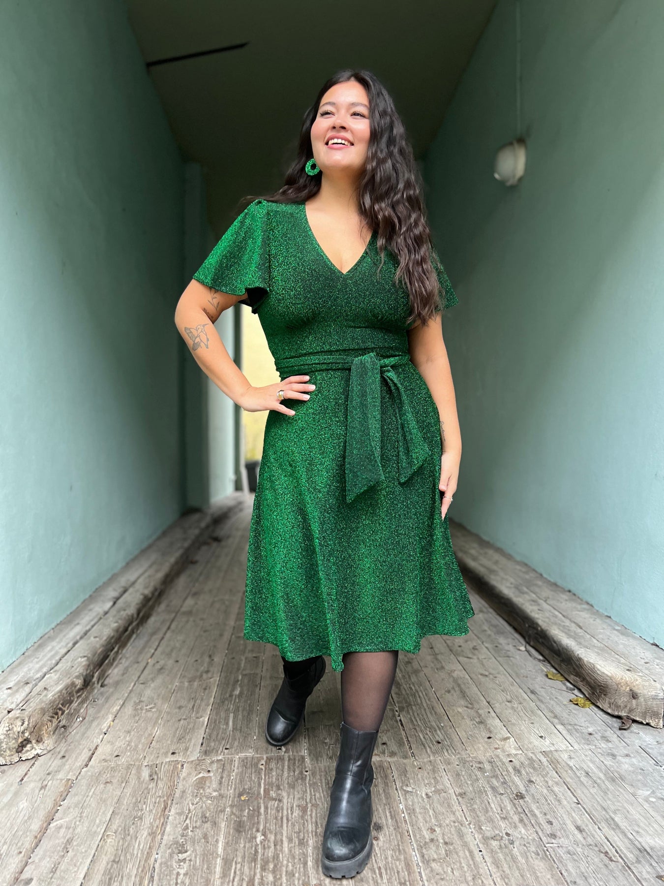 - Laget av restestoff i glitrende, grønn lurex