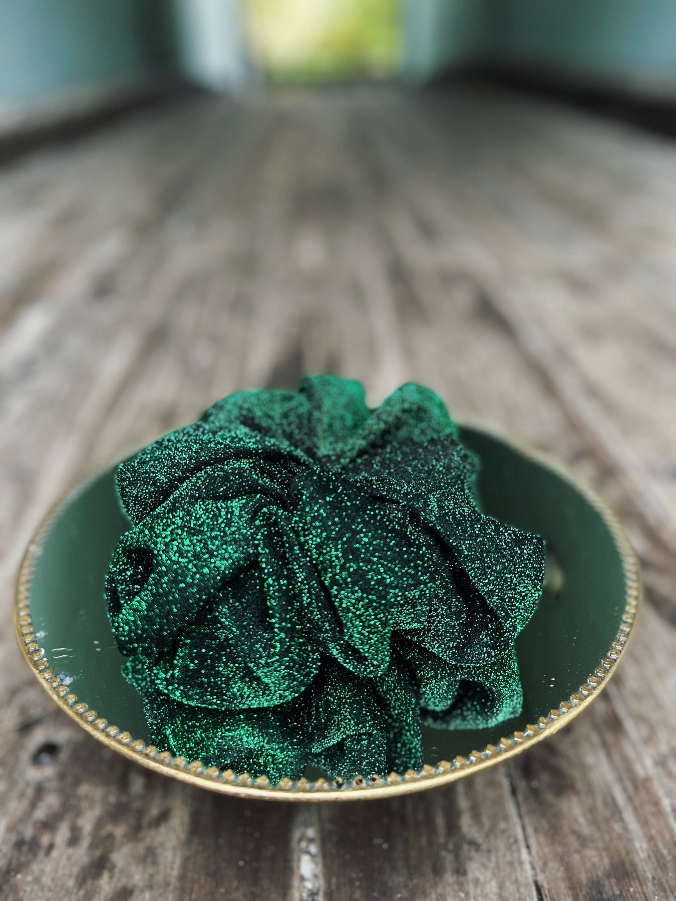 Stor, glitrende scrunchie laget av restestoff fra vårt rettferdige merke Dianas Vintage. Hårstrikken har nøyaktig samme stoff som Diana dress kort i grønn , så nå kan du få deg matchende hårpynt til buksedressen😍 Ekstra stas er det at den er sydd av gjengen på Spir Søm - en varig tilrettelagt arbeidsplass✨