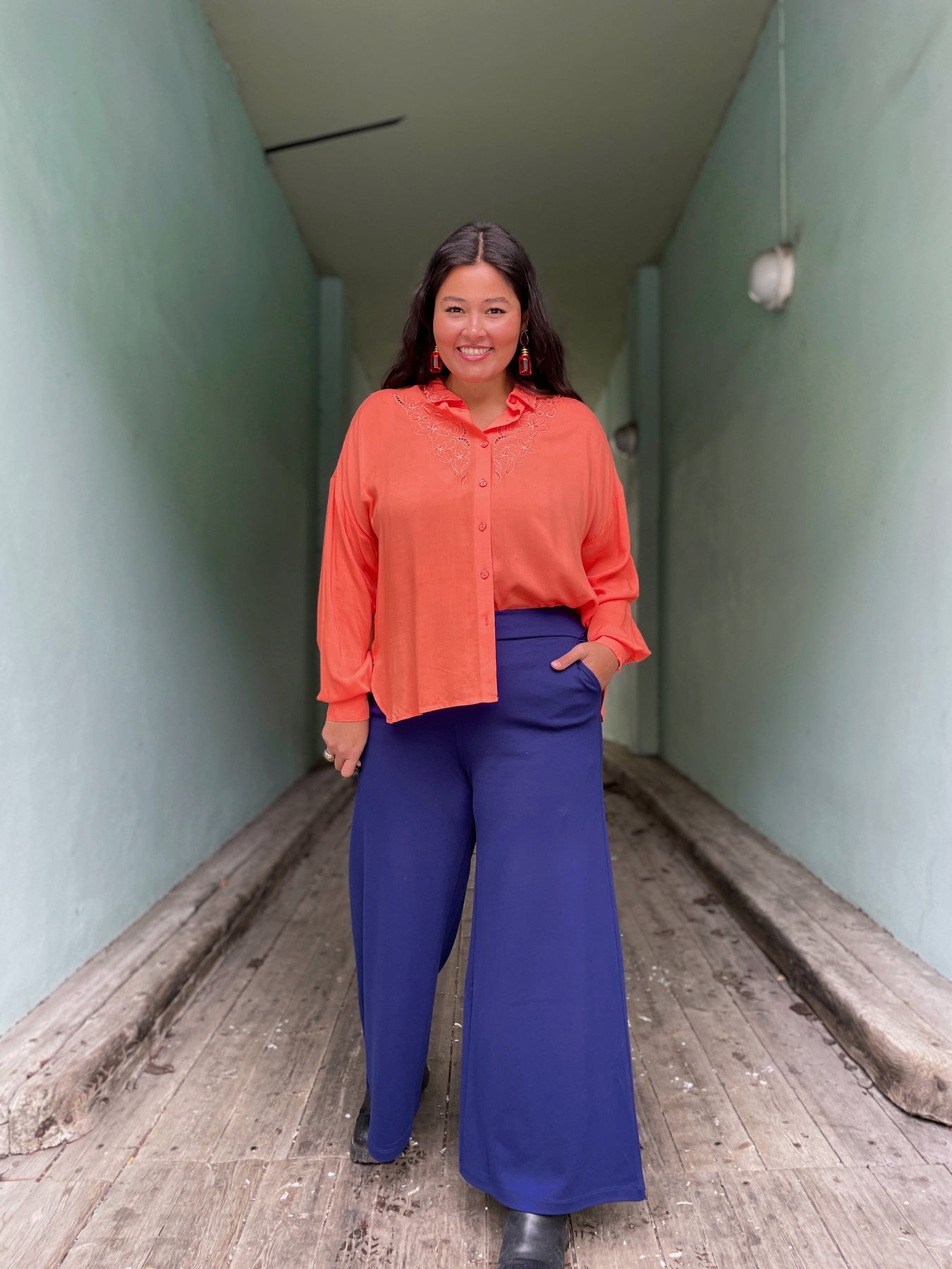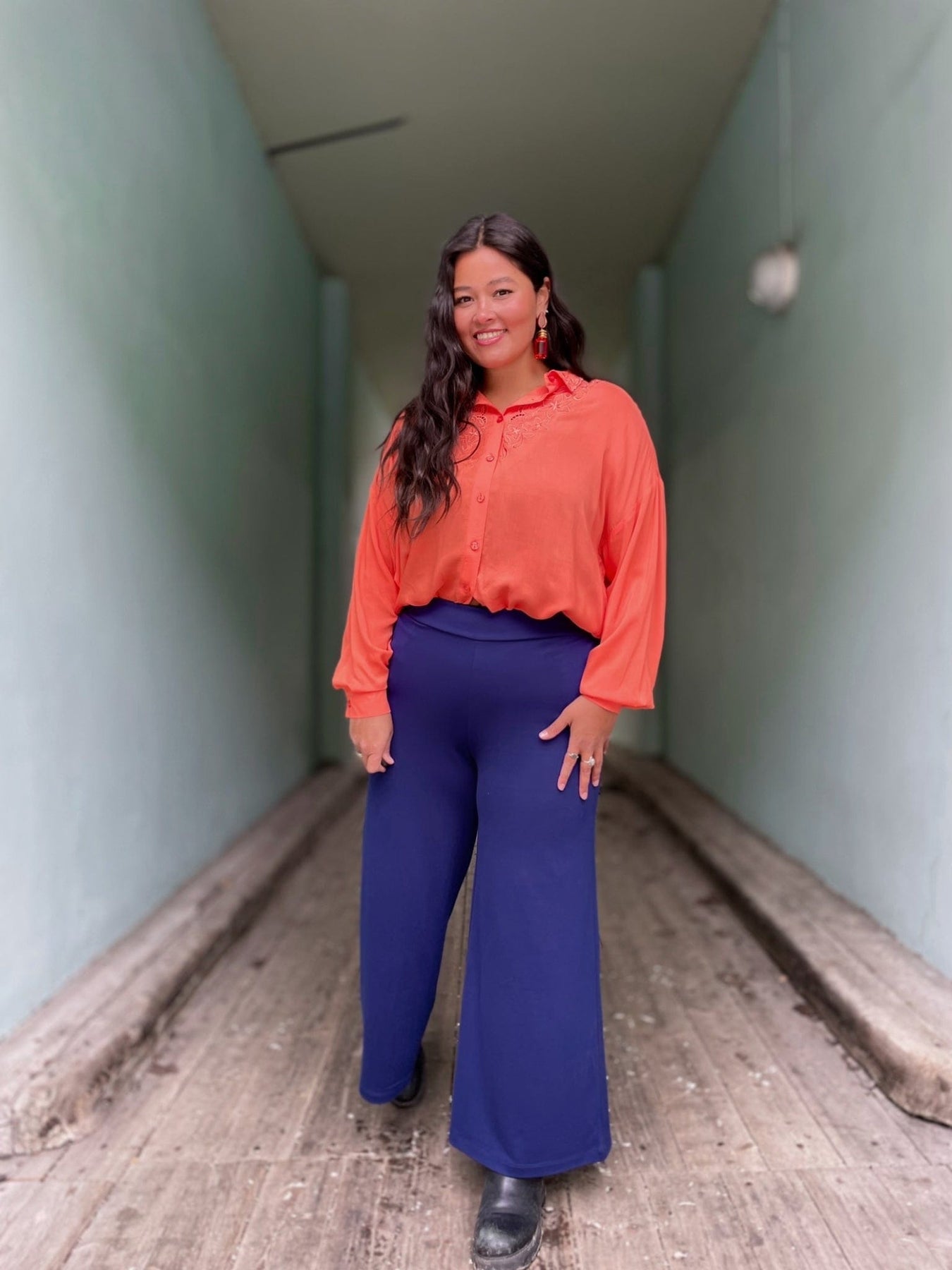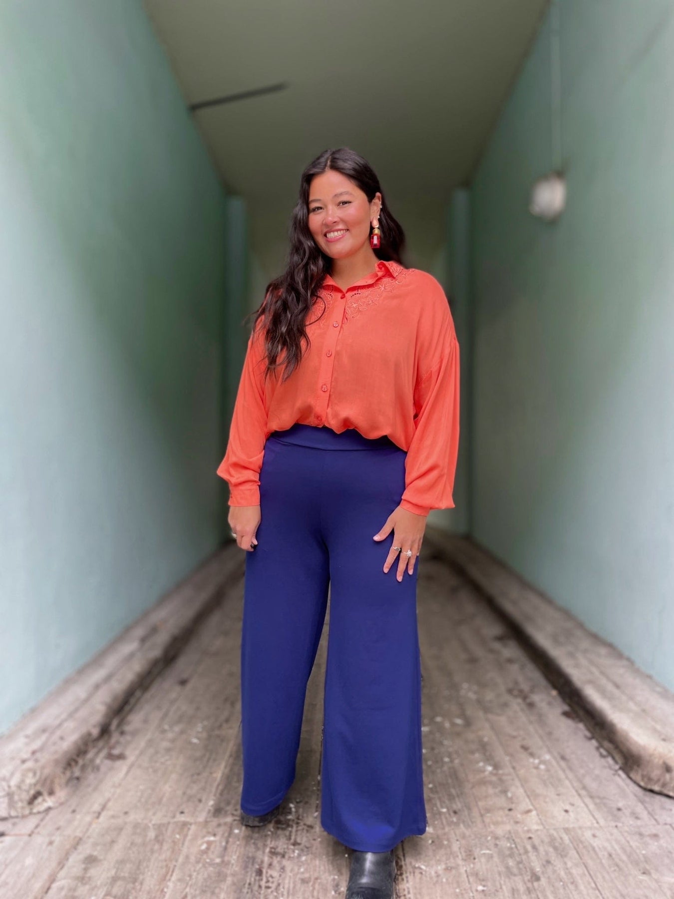 En joggebukse "in disguise", for å si det sånn! Den brede, elastiske linningen sitter behagelig og høyt i livet, og den myke EcoVero-viskosen faller tungt og fint, og har sikkelig godt hold. Den croppede, vide fasongen gir en superfin silhuett og er lett å style til jobbhverdagen – bruk den med en enkel topp og cardigan, eller med bluse og blazer når du vil være litt mer pyntet.
