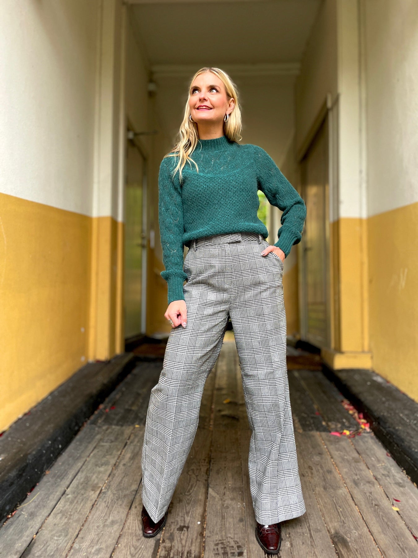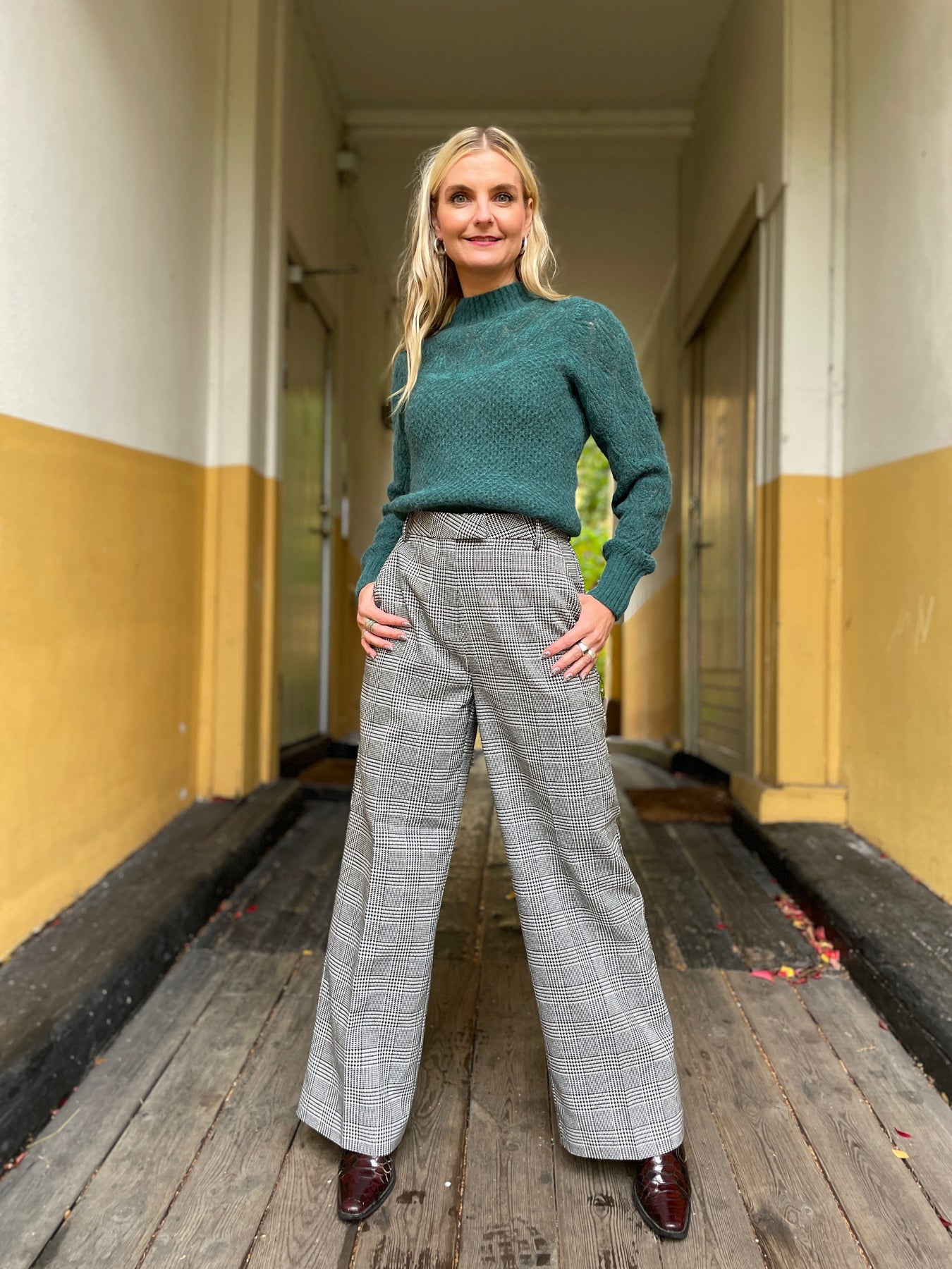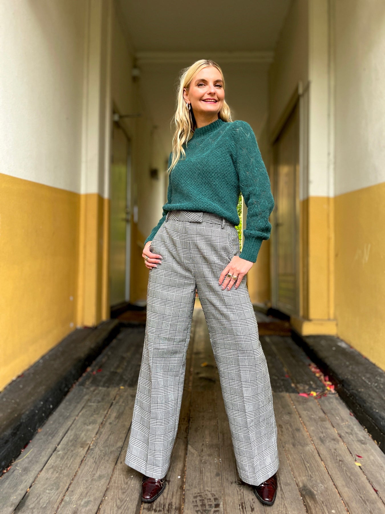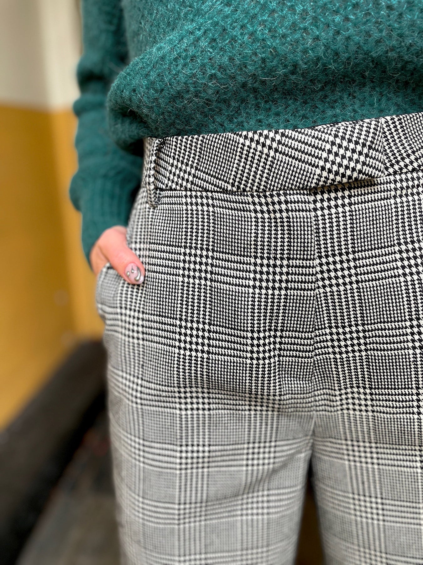 En klassisk grå dressbukse med en skimrende twist🪩 Denne buksa har nemlig et stilig rutemønster med glitrende tråder i sølv! En kul måte å kombinere tidløs eleganse med en moderne vri. Mancy buksen har høyt liv, rette vide ben med press og et lekkert fall som gjør den like fin på kontoret som på fest. Style den med en enkel bluse eller strikkegenser til hverdags – eller med en pyntet topp og hæler for kvelden 🔥