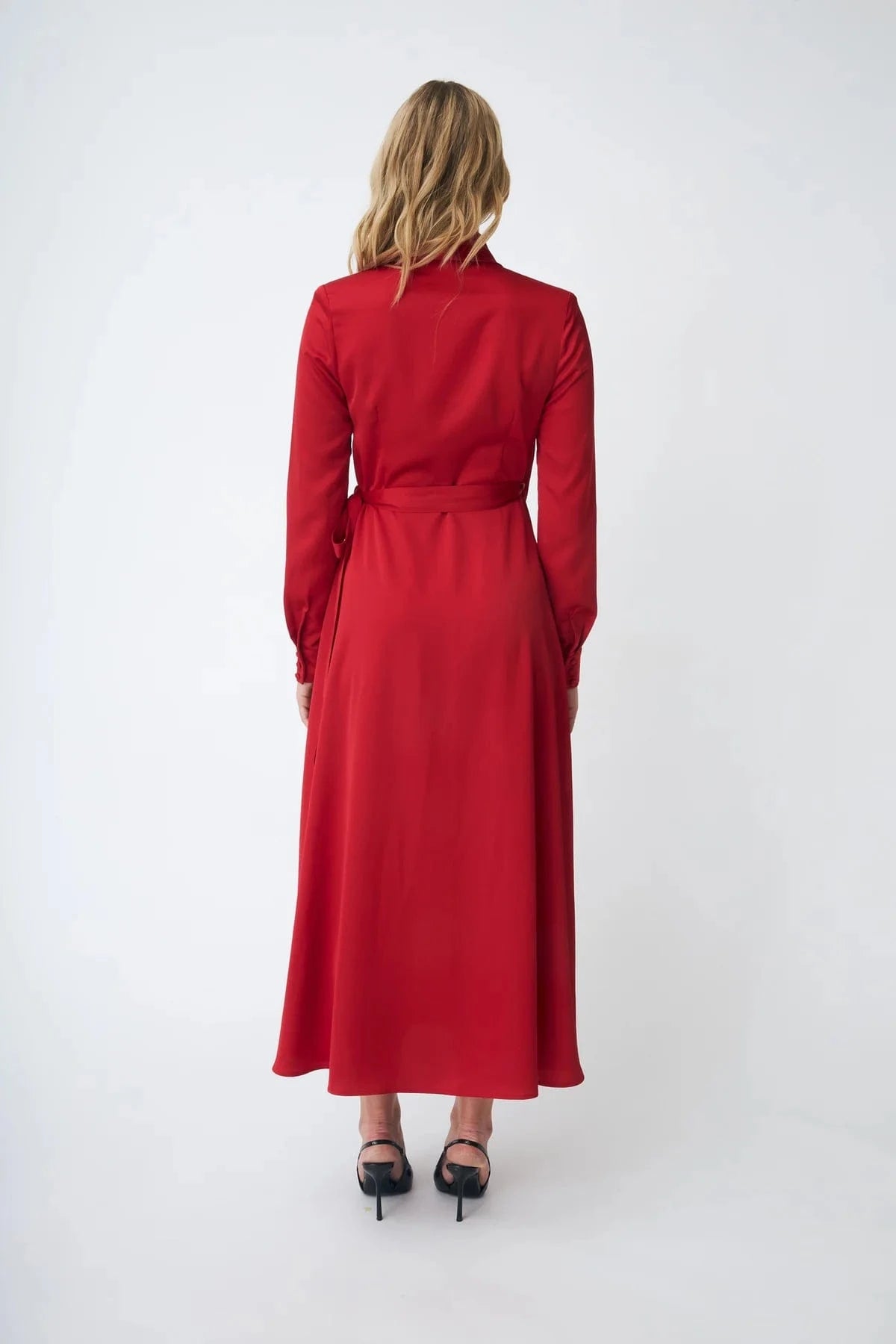 Klassisk, feminin og full av power! En ny wrap-kjole fra Cras i skinnende rødt❤️ Charleen-kjolen sitter som et skudd, har et tidløst snitt som fremhever midjen, og et glansfullt stoff som gir et eksklusivt uttrykk. Den avtakbare blomsten i siden gir en leken touch som du kan bruke for å pynte opp, eller droppe for et renere uttrykk. En perfekt kjole til både julemiddager, festlige kvelder og alle anledninger hvor du vil skinne litt ekstra ✨