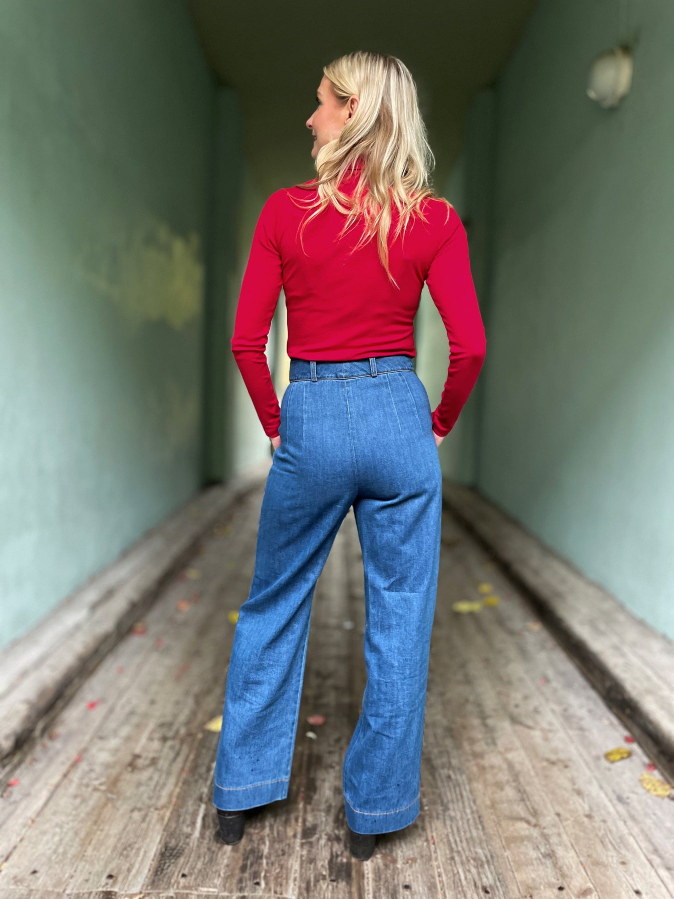 Dianas Vintage bukser Hepburn Pants med gylf - bukse med høyt liv - mørk blå