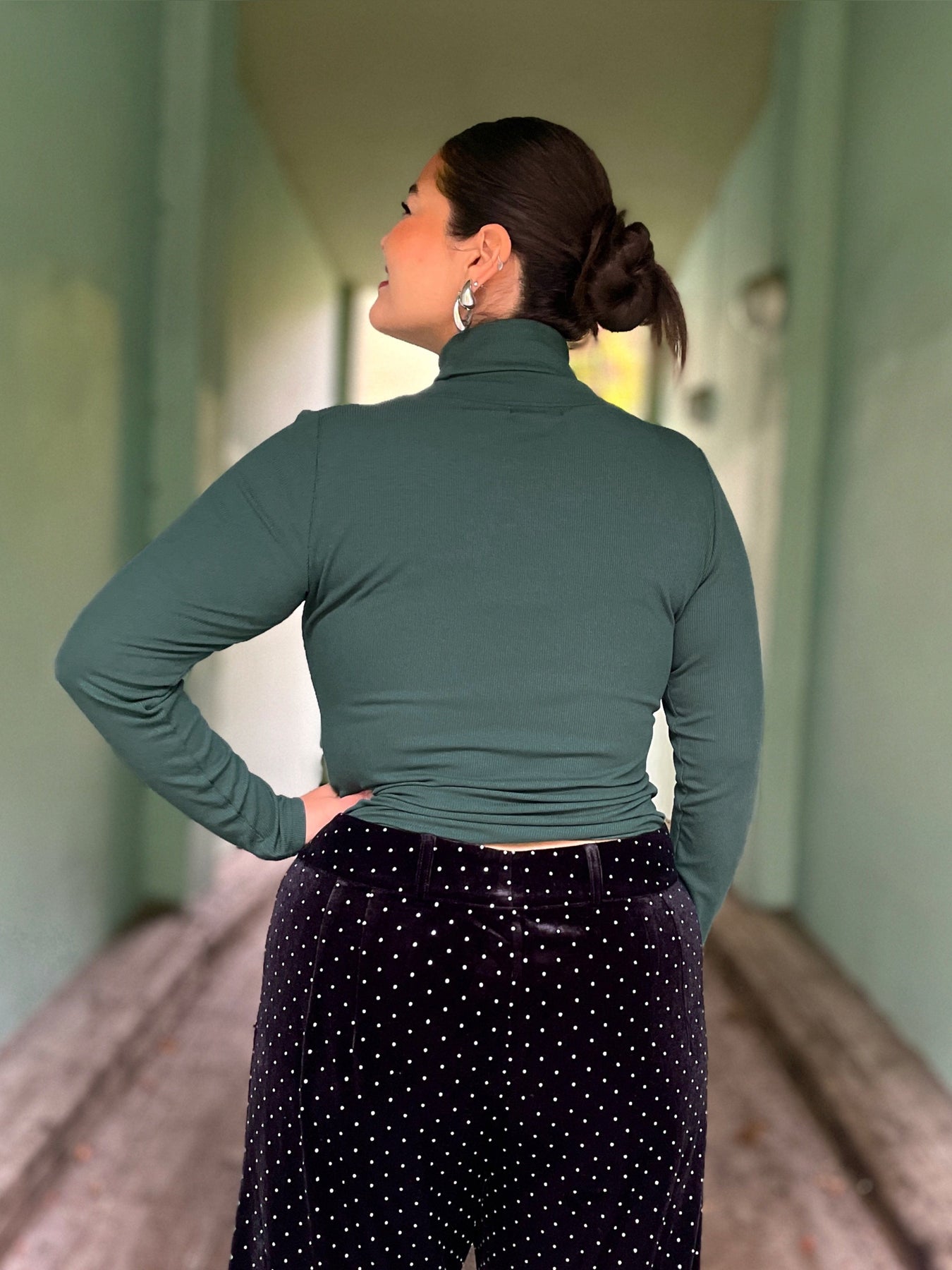 Vi elsker turtlenecks og har laget de perfekte høyhalserne til basisgarderoben! Viskosestoffet er utrolig mykt og deilig, og den dype grønnfargen er en evig favoritt hos oss🥦😍! En pologenser er super å kombinere med alle våre bukser, og passer like godt alene, som under en vintagebluse eller cardigan. Vi har bodd i King Louies turtlenecks i alle år, og vår egen versjon med tynne riller er enda mer elegant om vi må få si det selv, og vi har allerede flyttet inn i dette plagget for sesongen!