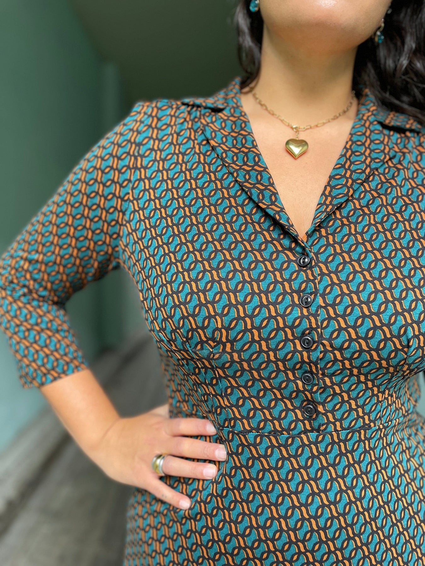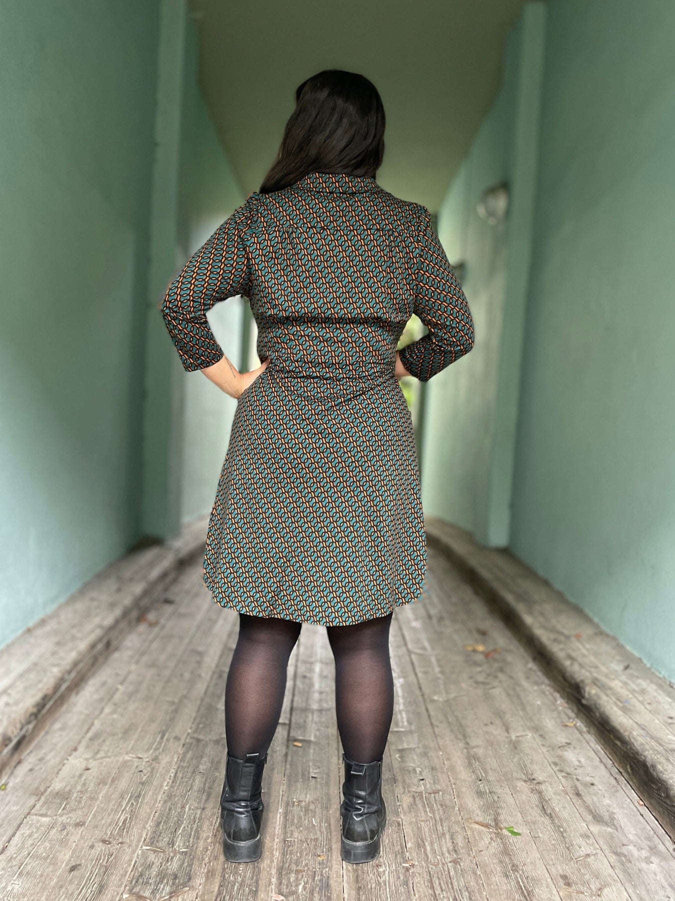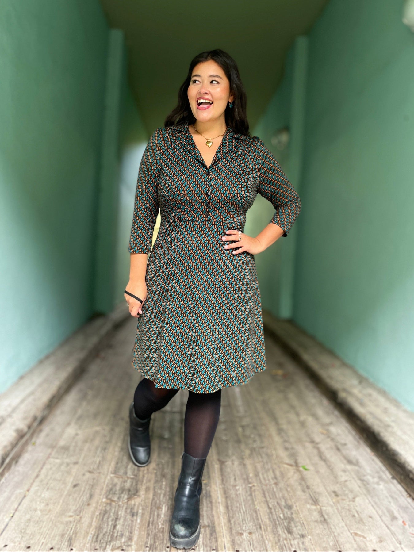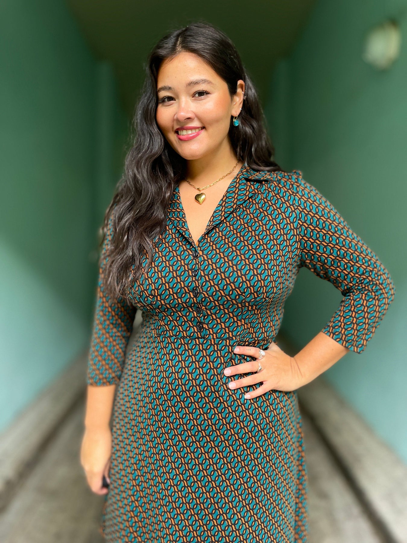 Endelig er den populære Diner-modellen tilbake! Dette er kjolen som fikser både kontordagen og middagsplanene etterpå! Diner Brisk har en flatterende v-utringning med krage, markert midje og fine legg under bysten som gjør denne modellen ekstra fin til deg som har stor byste. Den har stilig lenke-print i grønt og oransje, to av våre favorittfarger å møte høsten med🍂 Den myke og bærekraftige EcoVero-viskosen holder seg så pent i vask og gjør den superkomfortabel å bruke hele dagen. En ekte multitasker i garderoben ✨
