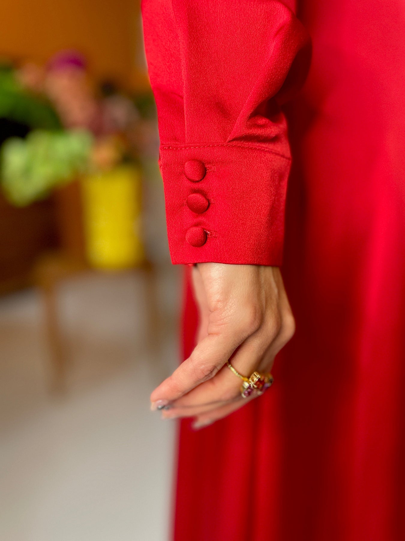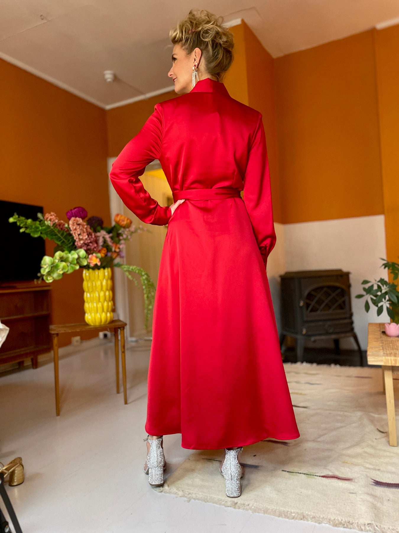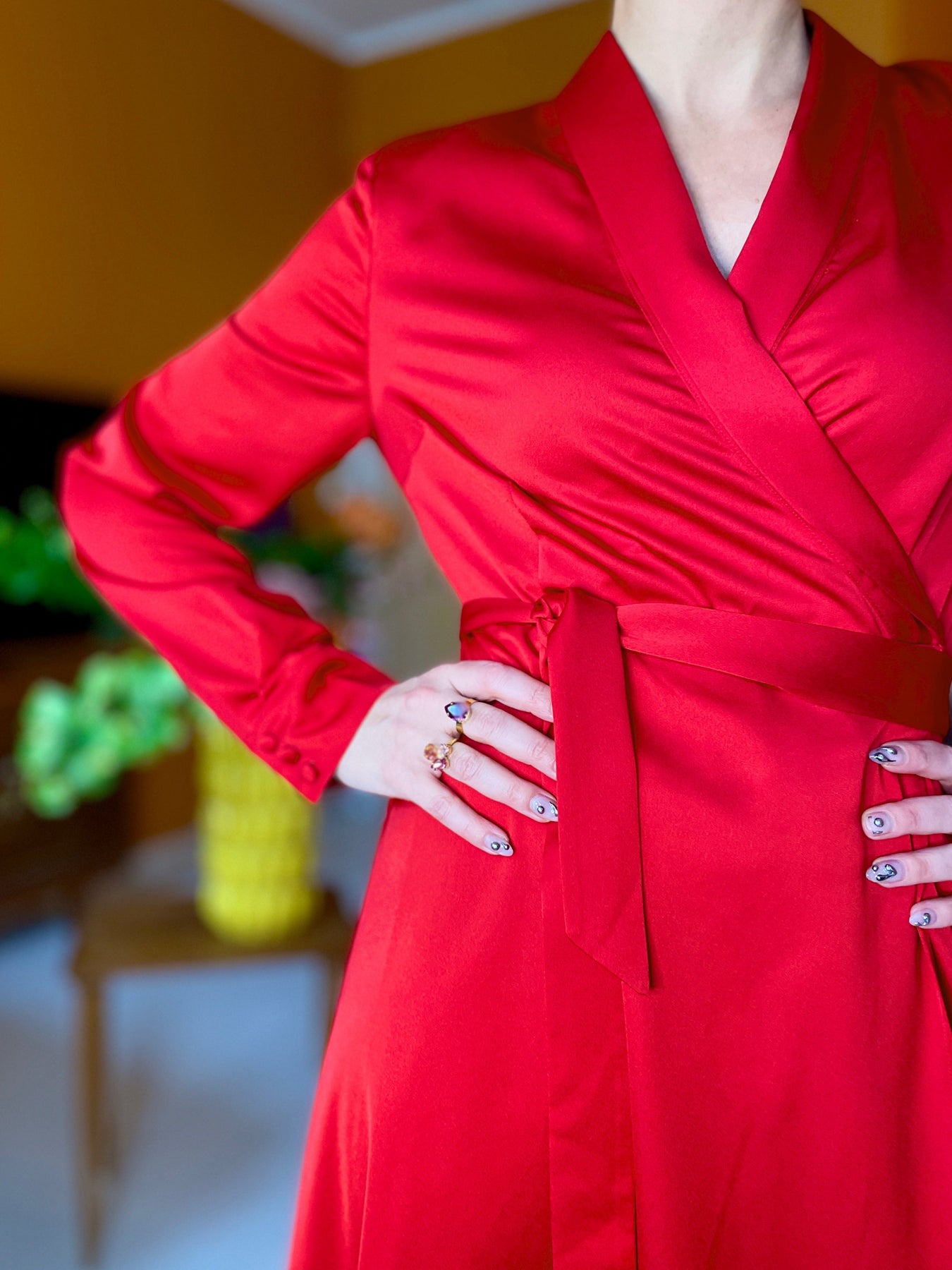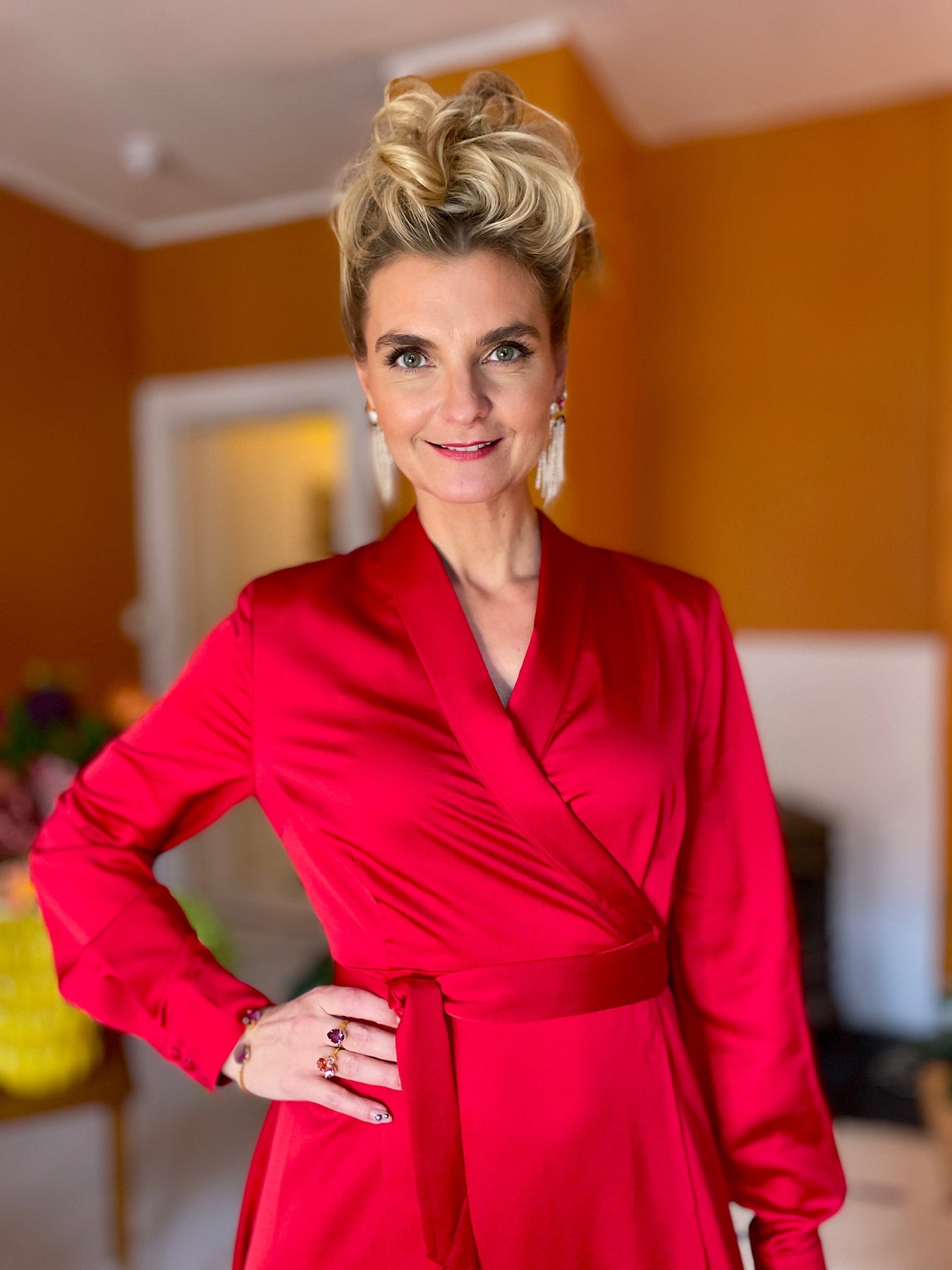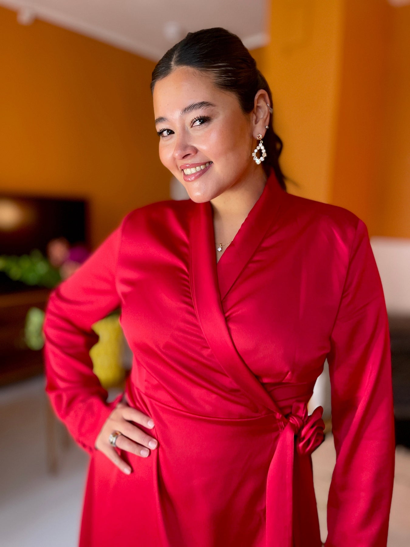 Klassisk, feminin og full av power! En ny wrap-kjole fra Cras i skinnende rødt❤️ Charleen-kjolen sitter som et skudd, har et tidløst snitt som fremhever midjen, og et glansfullt stoff som gir et eksklusivt uttrykk. Den avtakbare blomsten i siden gir en leken touch som du kan bruke for å pynte opp, eller droppe for et renere uttrykk. En perfekt kjole til både julemiddager, festlige kvelder og alle anledninger hvor du vil skinne litt ekstra ✨