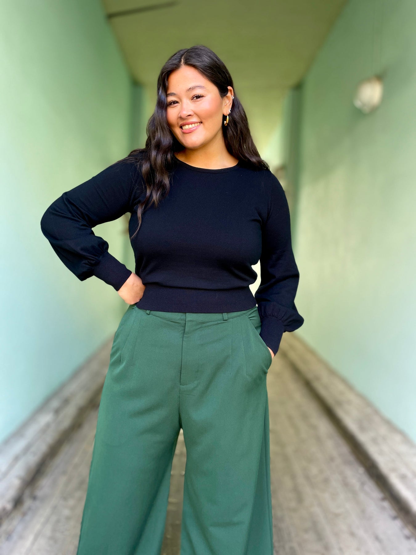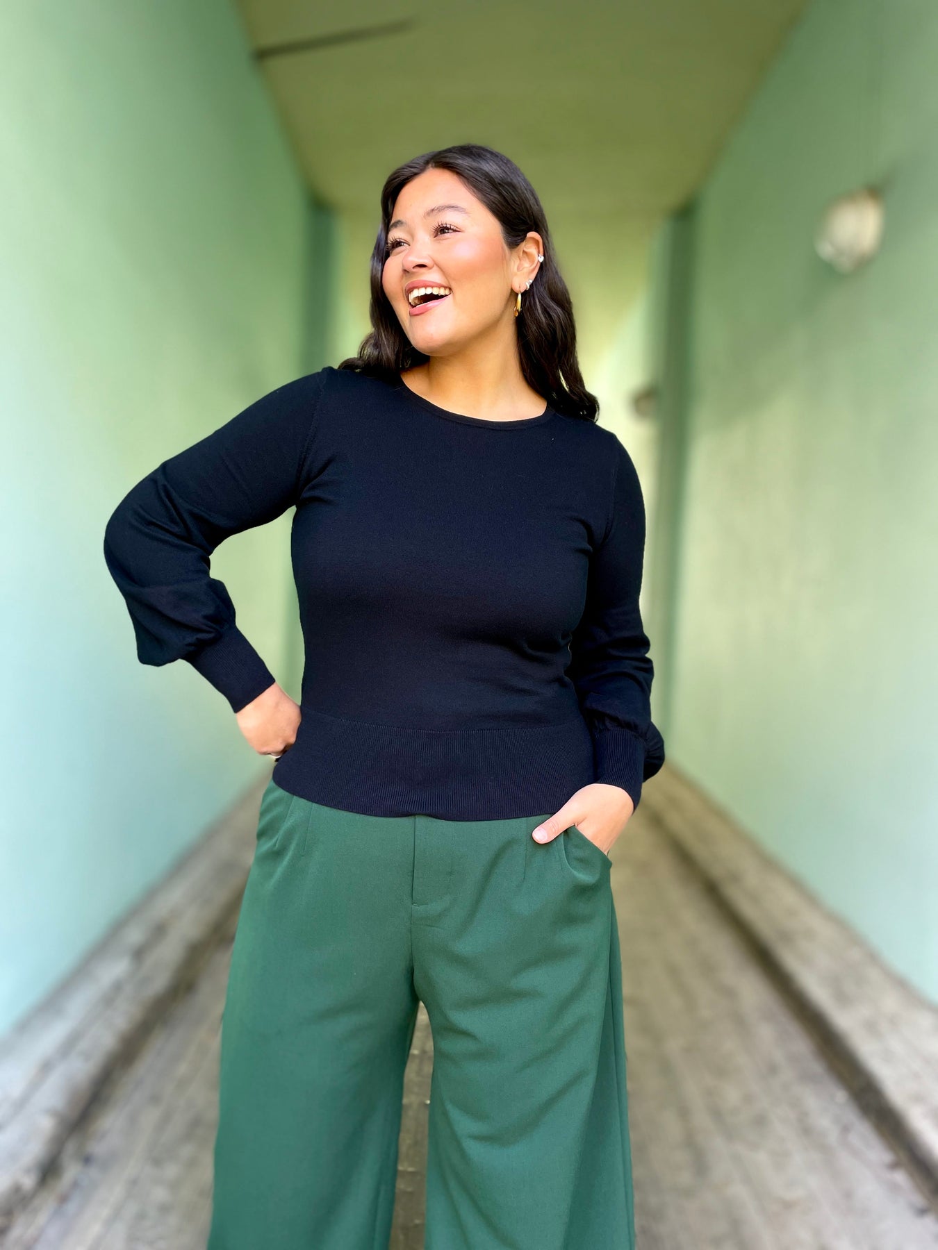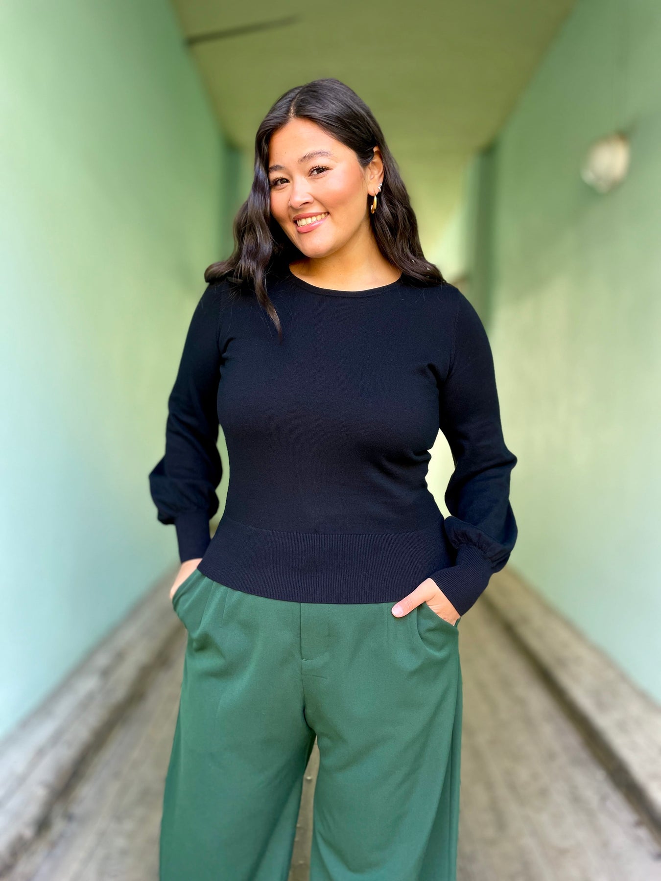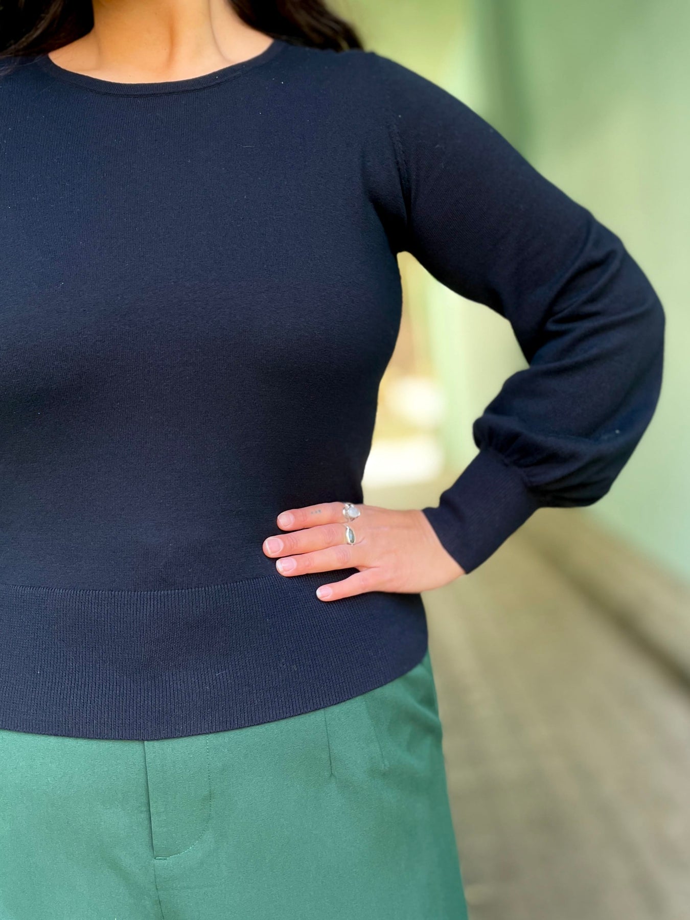 Bell-genseren fra King Louie er en stilsikker skatt som gir en umiddelbar touch av eleganse med sine flotte ballongermer👌🏽 Den er strikket i 100% økologisk bomull, noe som gjør den herlig myk og føles som en deilig klem mot huden. En genser som dette, i ensfarget sort, er en klassiker som glir rett inn i nøkkel-garderoben da den passer til det meste og blir et plagg man vil ha glede av i årevis🖤 Vi synes smykker i gull kommer ekstra fint frem sammen med sorte plagg, så her vil vi pynte oss med vakre, gylne øredobber og lag på lag med smykker✨