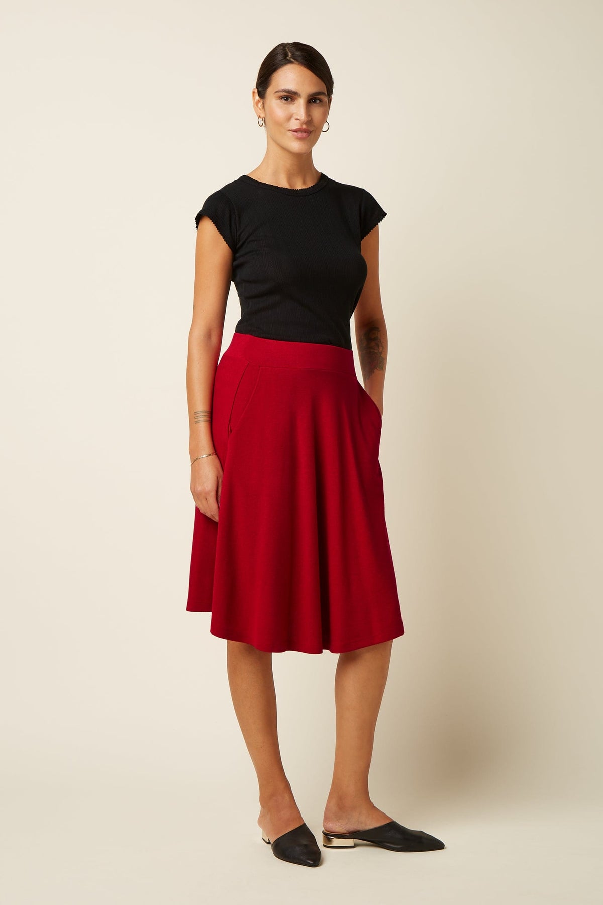 Serena-skjørtet er tilbake, nå i rødt! Dette er det perfekte røde skjørtet med lommer i sidene, strikk i livet, og tungt mykt fall🙌 Vi elsker skjørt som uansett anledning gir deg en følelse av komfort OG herlig eleganse. Bestselgeren Serena har et komfortabelt snitt og som sitter som støpt i livet. Dette skjørtet passer virkelig til alt - enten om du går for en sporty, pynta, avslappa eller rocka stil. Og trenger du et belte i livet, har vi de fineste strikkbeltene!