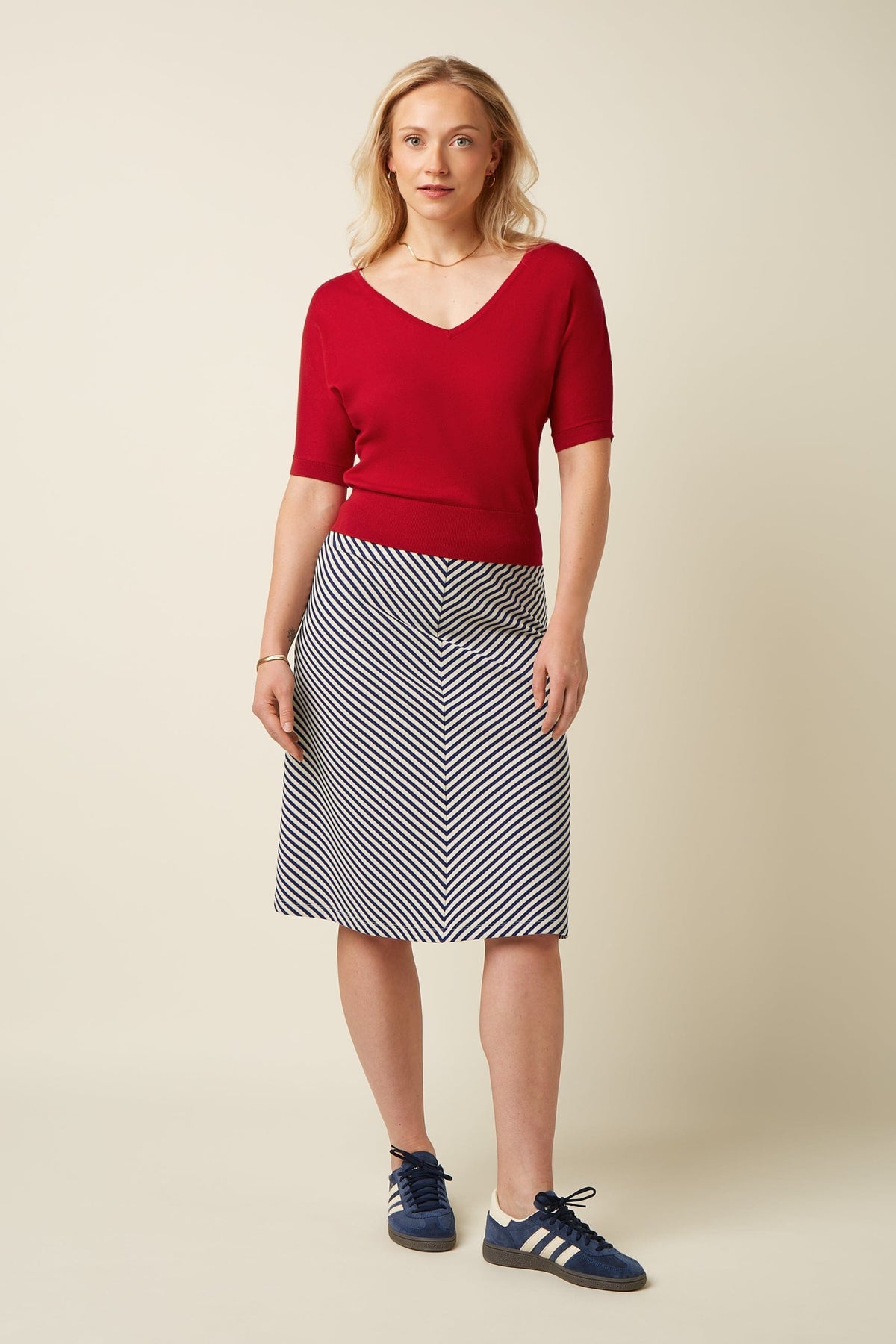 Valentina er den perfekte go-to toppen når du vil ha noe som både føles luksuriøst og ser effortless ut ❤️ Strikket i myk, økologisk bomull som puster godt og føles behagelig mot huden - like fin alene som under en blazer eller cardigan. Den enkle fasongen og flatterende v-halsen gjør den enkel å style til alt fra høytlivsbukser til skjørt. En tidløs garderobefavoritt som funker året rundt!