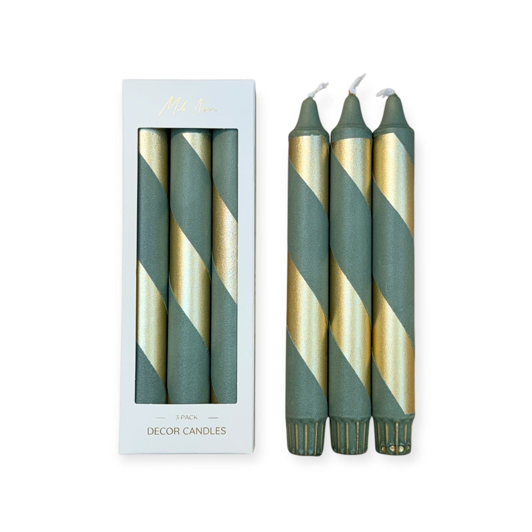 Mila Noire stearinlys Stearinlys spiral 3-pakk - grønn og gull