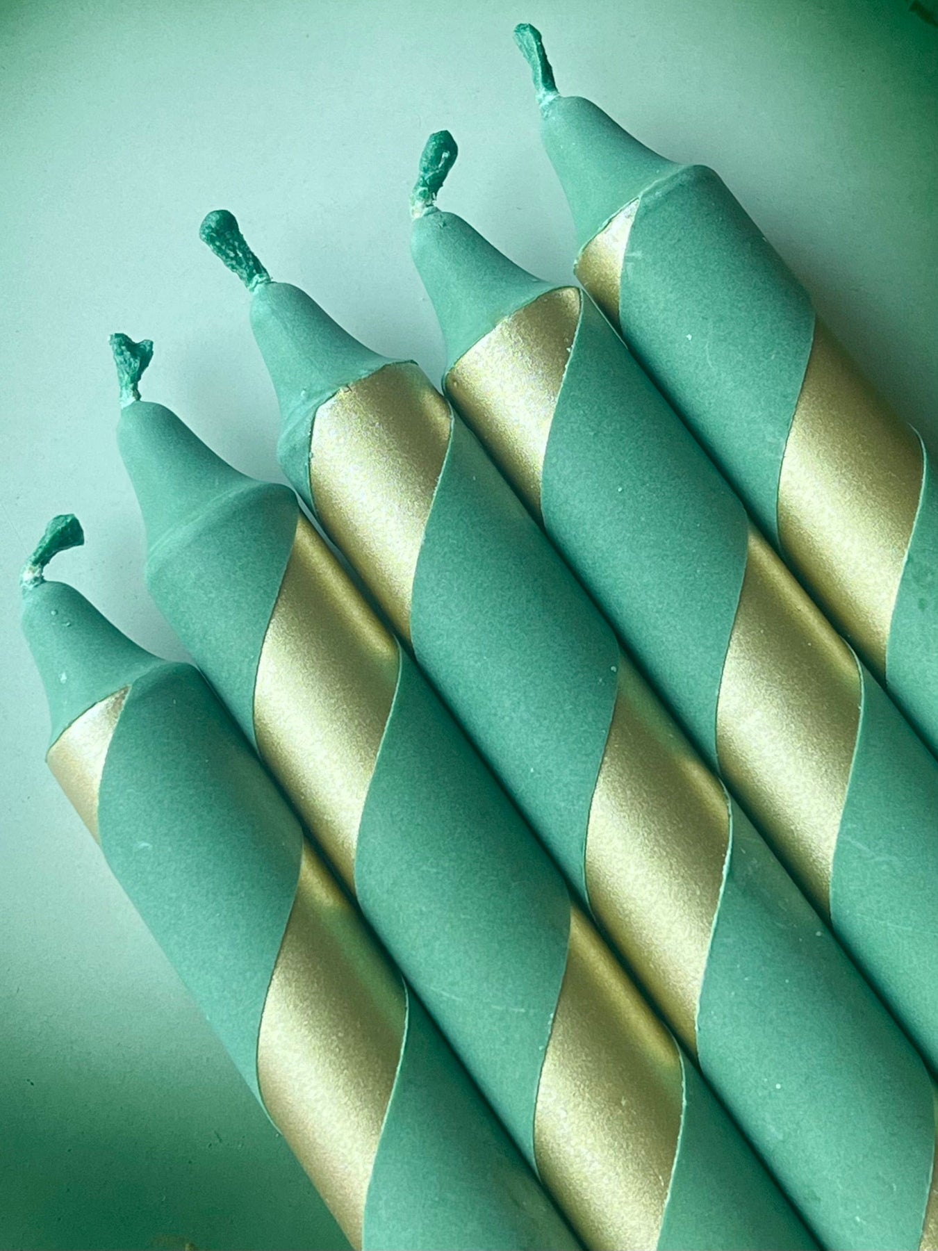 Vi digger disse vakre stearinlysene med spiraldekor i grønt og gull🤩 Lysene er virkelig et blikkfang på bordet, og perfekte til jul🎄Lysene er laget av 100% stearin og er dyppet for hånd i miljøvennlige, giftfrie farger. Lysene selges i pakke på tre stykk. Håndlaget av Oslobaserte Mila Noir.