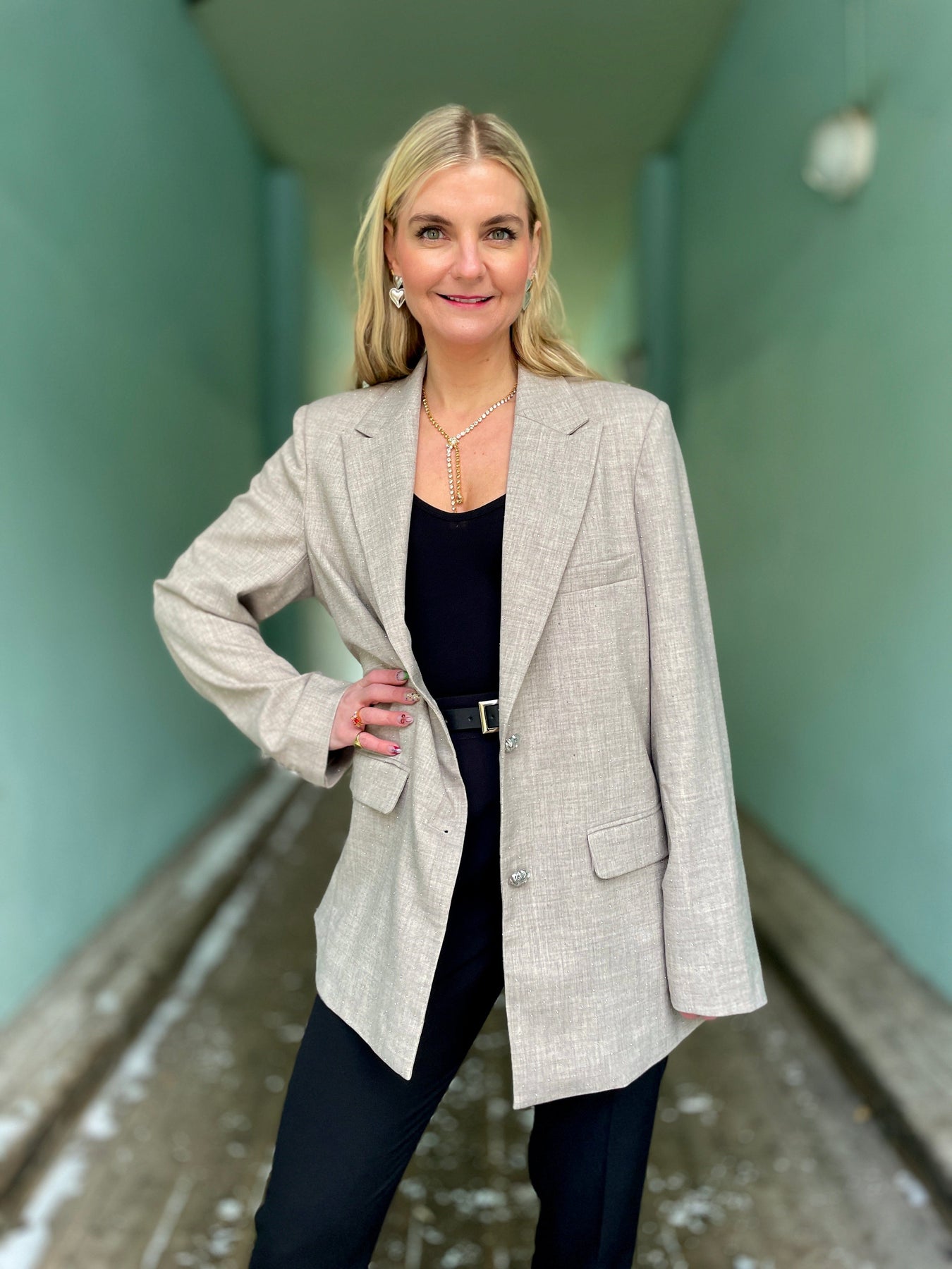 Denne blazeren er et skikkelig garderobekupp ✨ Den klassiske, rette fasongen gir et skarpt og tidløst uttrykk og den er like fin med jeans og t-skjorte som over en topp eller vintagebluse. Stoffet har litt stretch, så den sitter pent uten å føles stiv 🤍