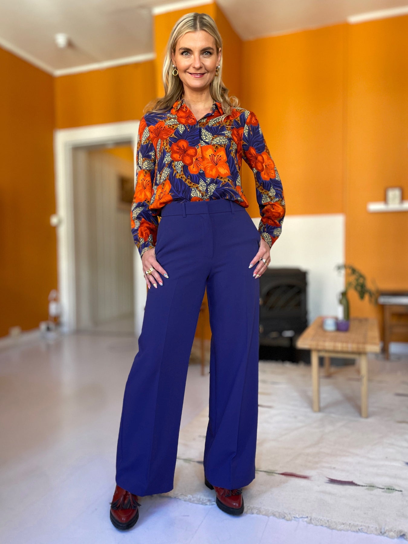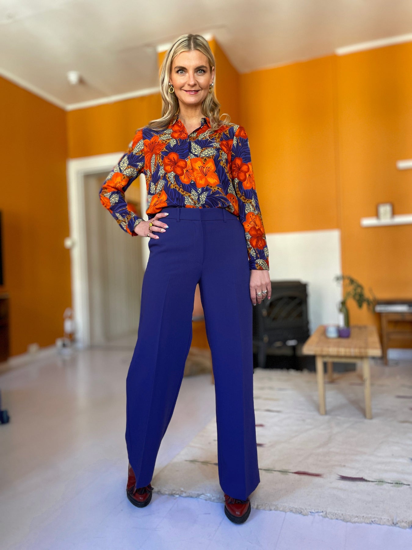 Federica Marple er buksen som gir deg den perfekte balansen mellom komfort og en skarp, gjennomført silhuett. Blåfargen er nydelig, og har en lilla undertone som sklir rett inn i sesongen fargepalett! Kvaliteten faller mykt, har akkurat passe stretch og holder fasongen hele dagen - en skikkelig pålitelig favoritt i garderoben.💙 Den vide, rette benformen gir et elegant uttrykk, samtidig som buksen er superbehagelig å bevege seg i. En allrounder du kan style både opp og ned! 🙌🏼