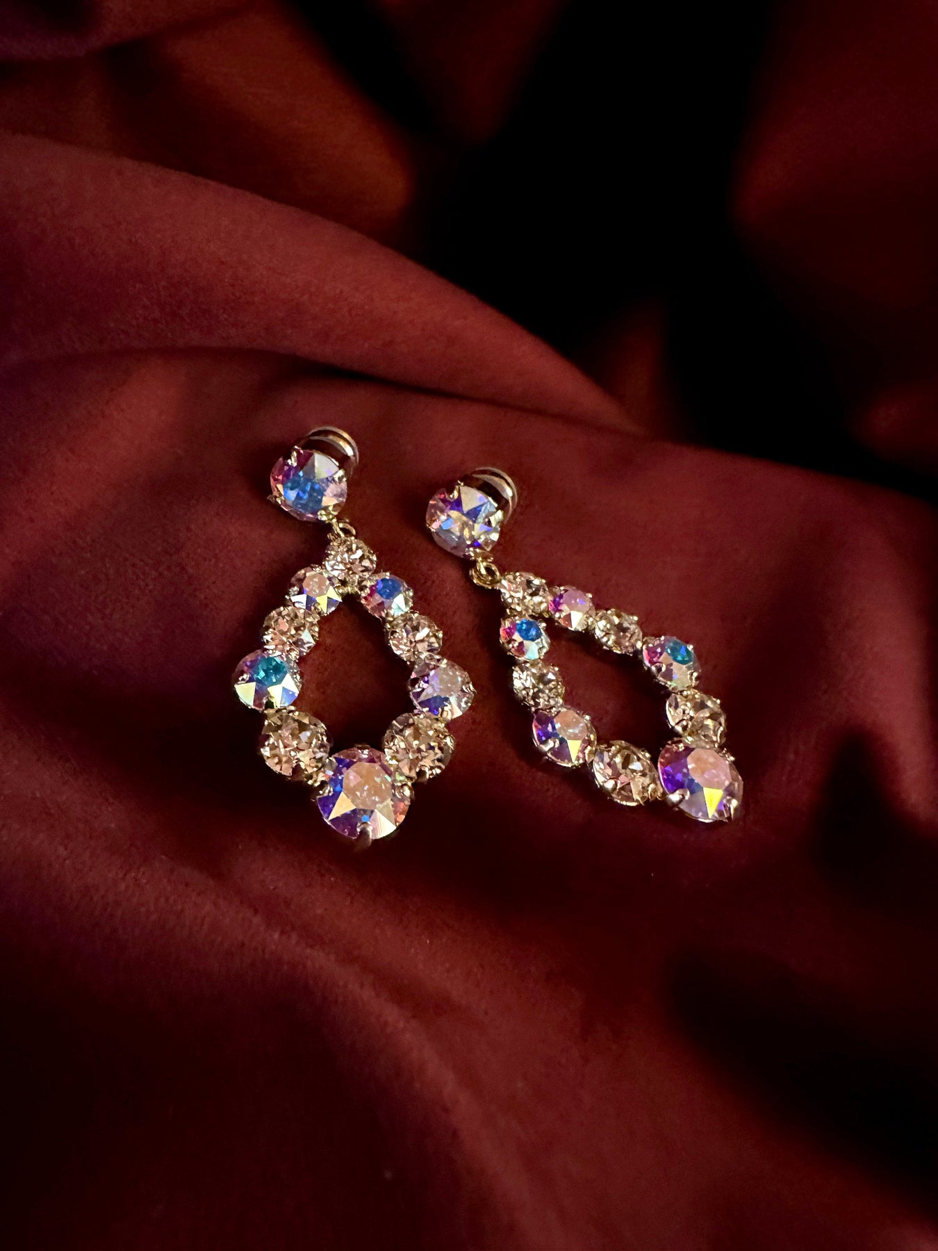 • Dråpeformede øredobber med krystaller i farger inspirert av nordlyset