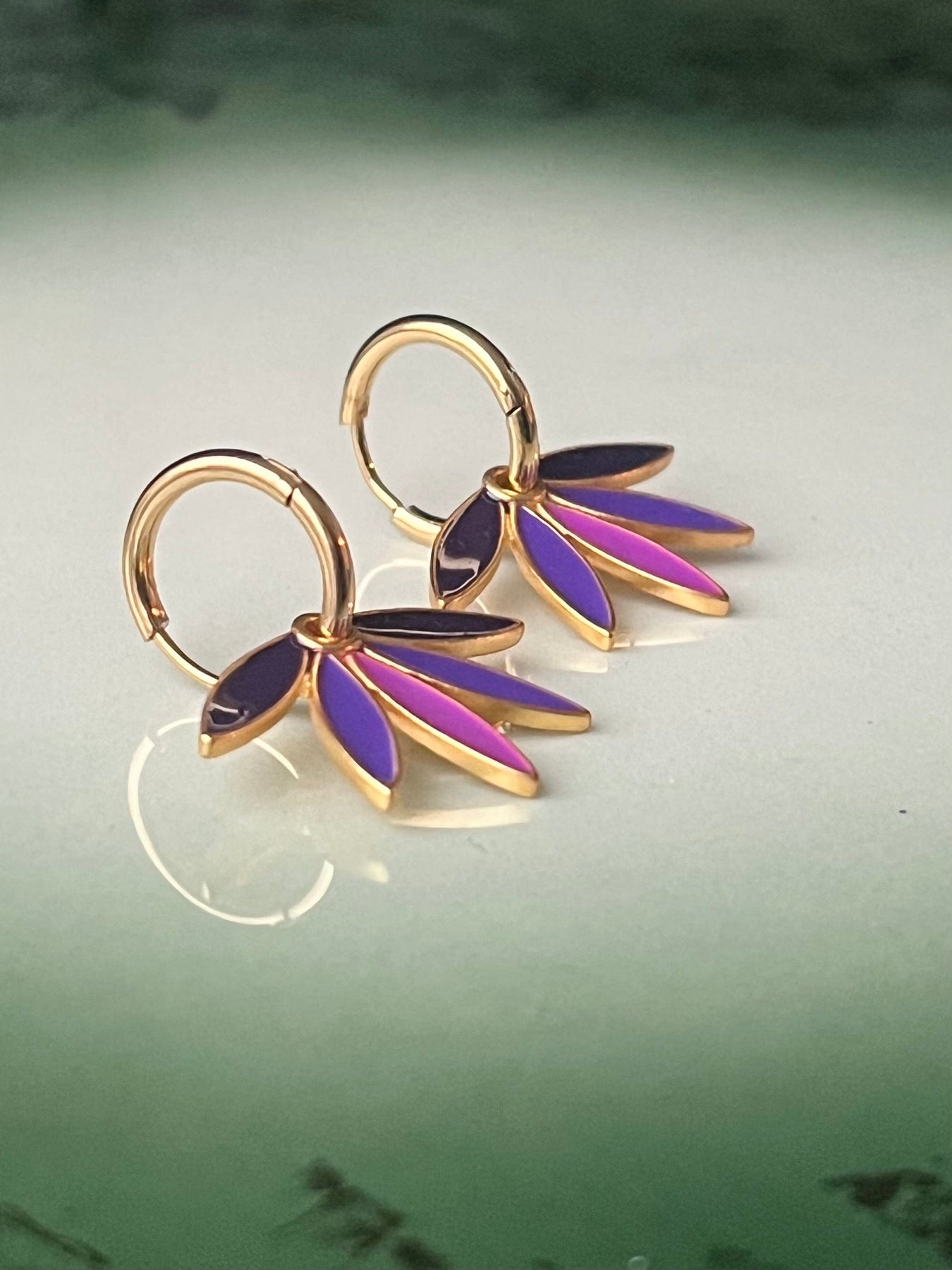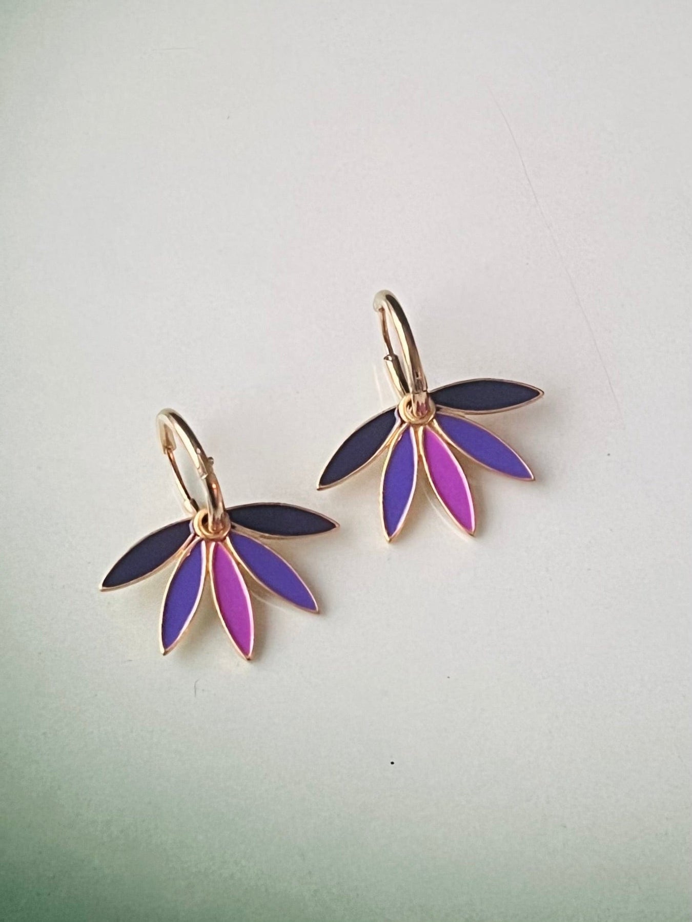 Superstilige, hengende øredobber med blanke, emaljerte blader😍 Vi elsker dette designet fra Urban Hippies og denne nydelige varianten i lilla fargetoner gir en lekker og bohemsk look som raskt har blitt Dianasjentenes hverdags-favoritt! Nikkelfritt og etisk produsert, blir ikke bedre enn det🫶🏼