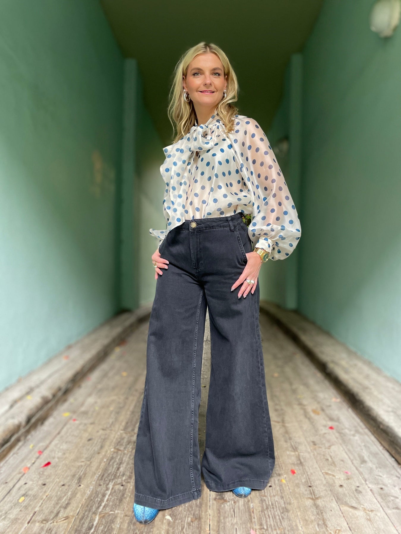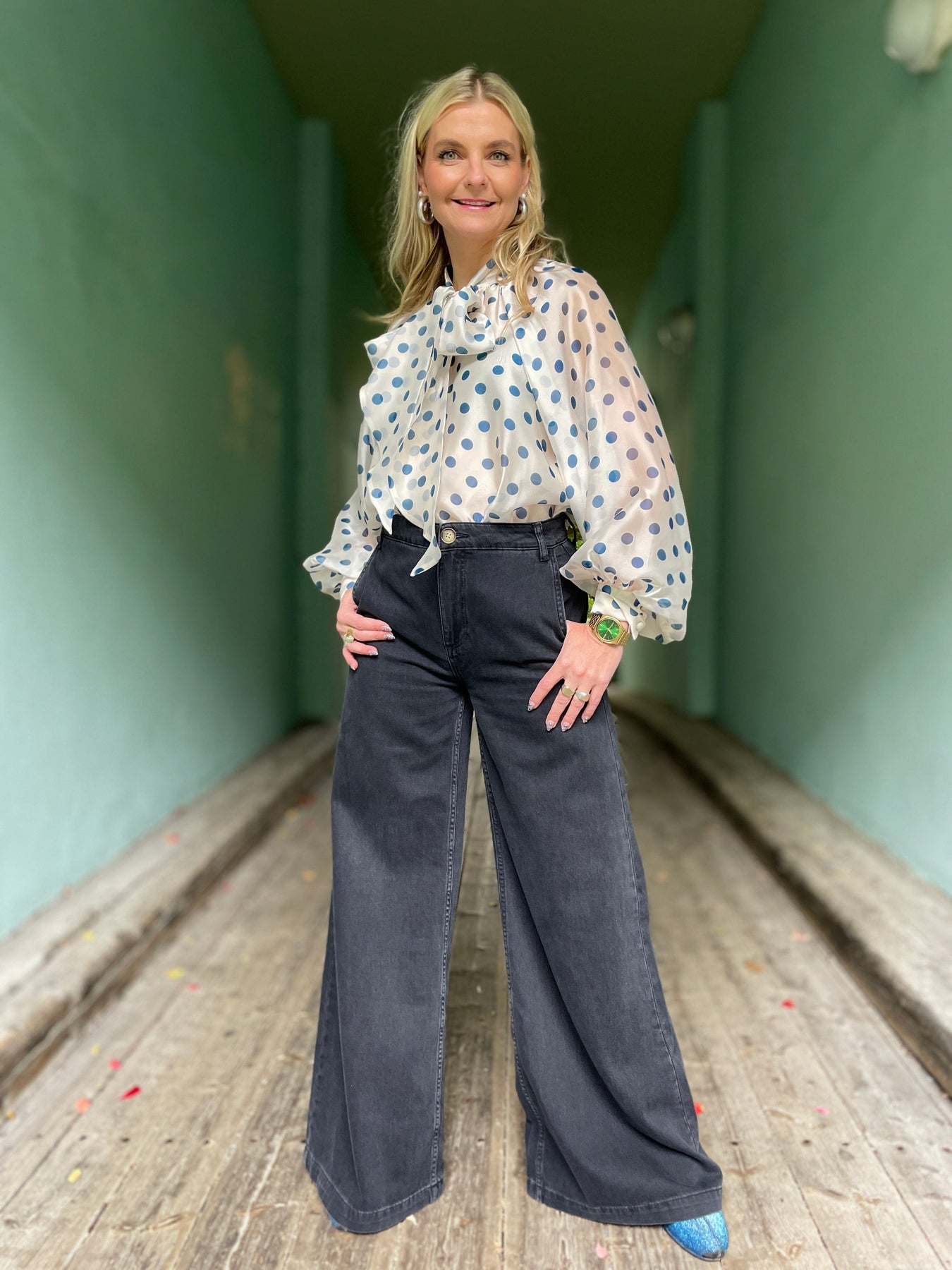 Peppa er en ny buksemodell fra King Louie med vide ben, høyt liv og bred linning – et skikkelig flatterende snitt som gir deilige 70-tallsvibber! Den gråsvarte fargen er både superfin og utrolig anvendelig, så denne kan du bruke året rundt. Style den med en klassisk bluse til jobb, og pimp opp med noen freshe øredobber – så er du klar for fest ✨. Laget i 100 % økologisk bomull i en deilig kvalitiet som føles behagelig hele dagen. Dette er buksa du aldri får nok av 🤤💃 Buksene er ganske lange i lengden, men kjempekul å klippe av nede for en mer rocka look.
