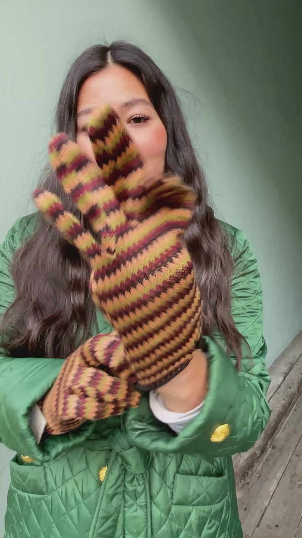 - Hansker med grafisk smårutete mønster