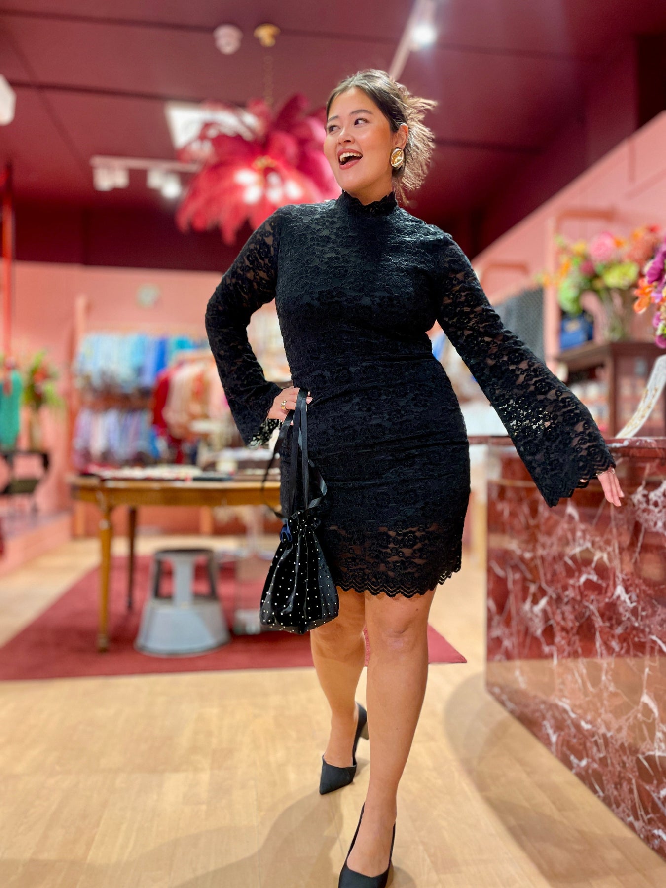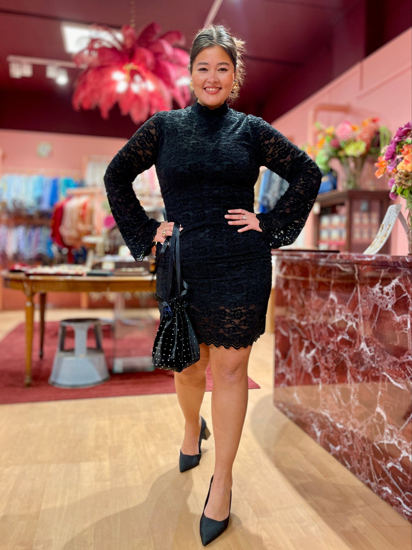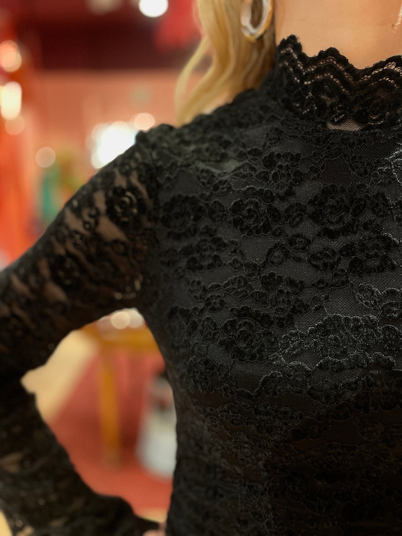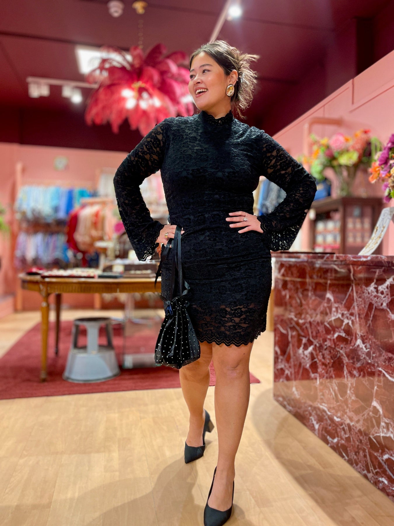 Gjør deg klar for fest med denne fantastiske, blondekjolen fra Cras - nå tilbake i tidløs svart! 🖤 Med lange armer, høy hals og vakre blonder i myk fløyel oser den av feminin romanse og vi lover at du vil føle deg som en vakker stjerne i denne showstopperen av en kjole😍 De fine draperingene fra ryggen og over rumpa gjør at kjolen sitter helt fantastisk fint og med et stretchy og komfortabelt stoff, trenger du ikke å bekymre deg over sømmer som gnager eller stramme ubehageligheter. Her er det bare å danse i vei og ta i mot komplimentene💃🏽
