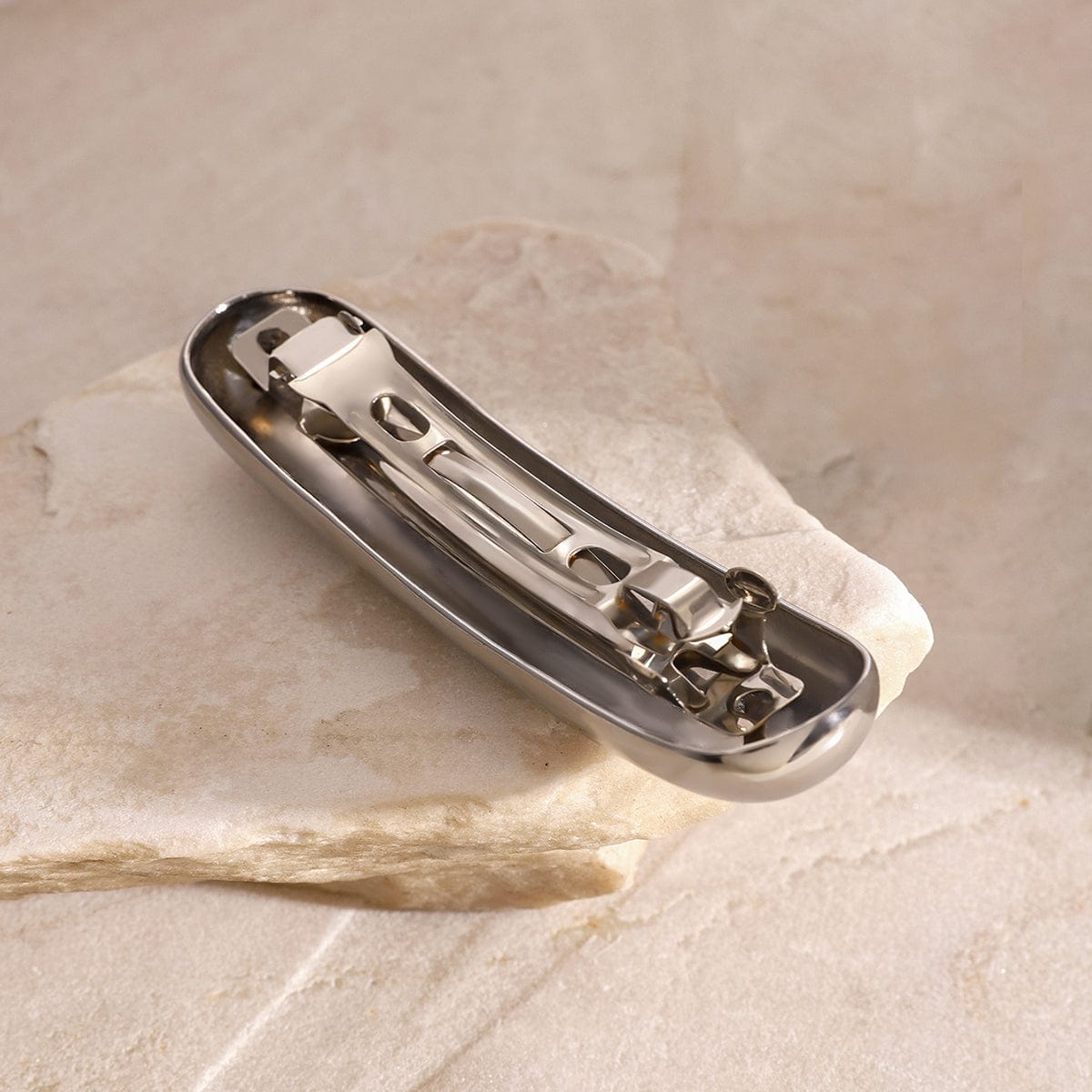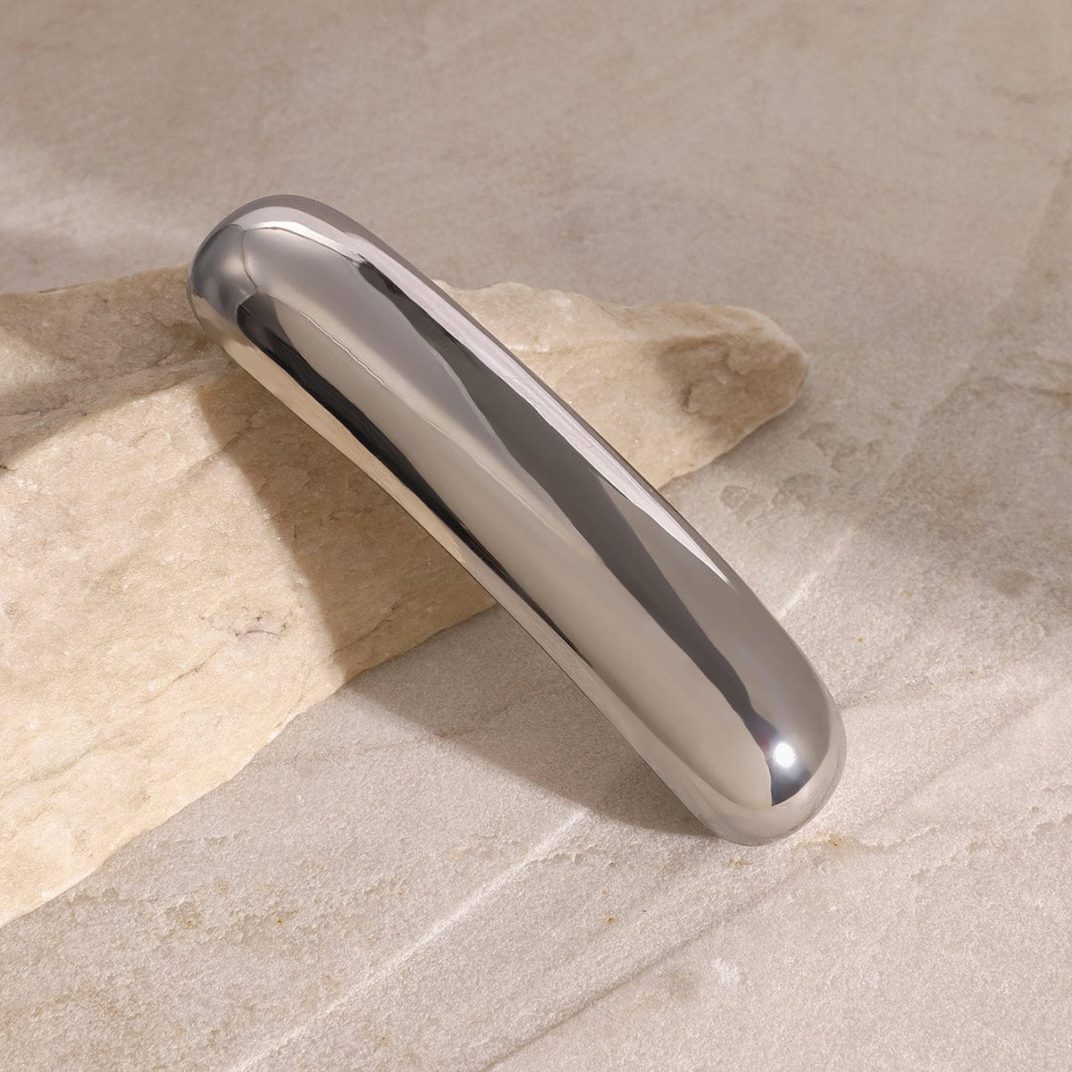 En bred avrundet hårspenne i skinnende sølv! En elegant løsning for å holde styr på lokkene. Spennen er laget i polert rustfritt stål, og vil ikke falme eller sverte av i fargen.