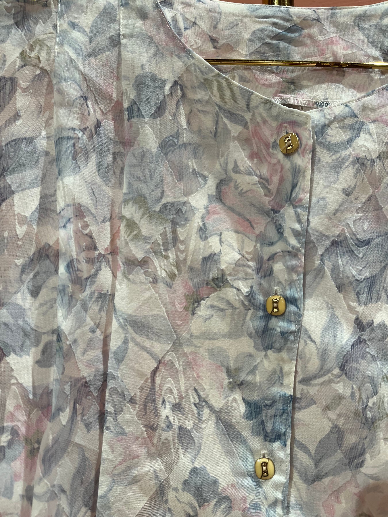 Denne vintageblusen har duse, fine farger og er så lett og deilig i stoffet🩵 Den er i 100% bomull og har en rund hals. Vi dåner!😍