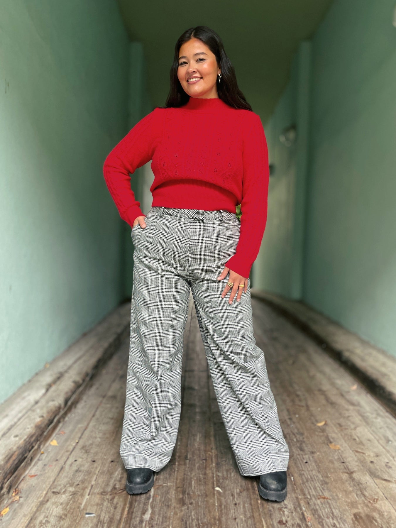 • Caterina har på seg størrelse 44 på bildene. Den trekker litt ved lommene da hun har en 46 hofte
