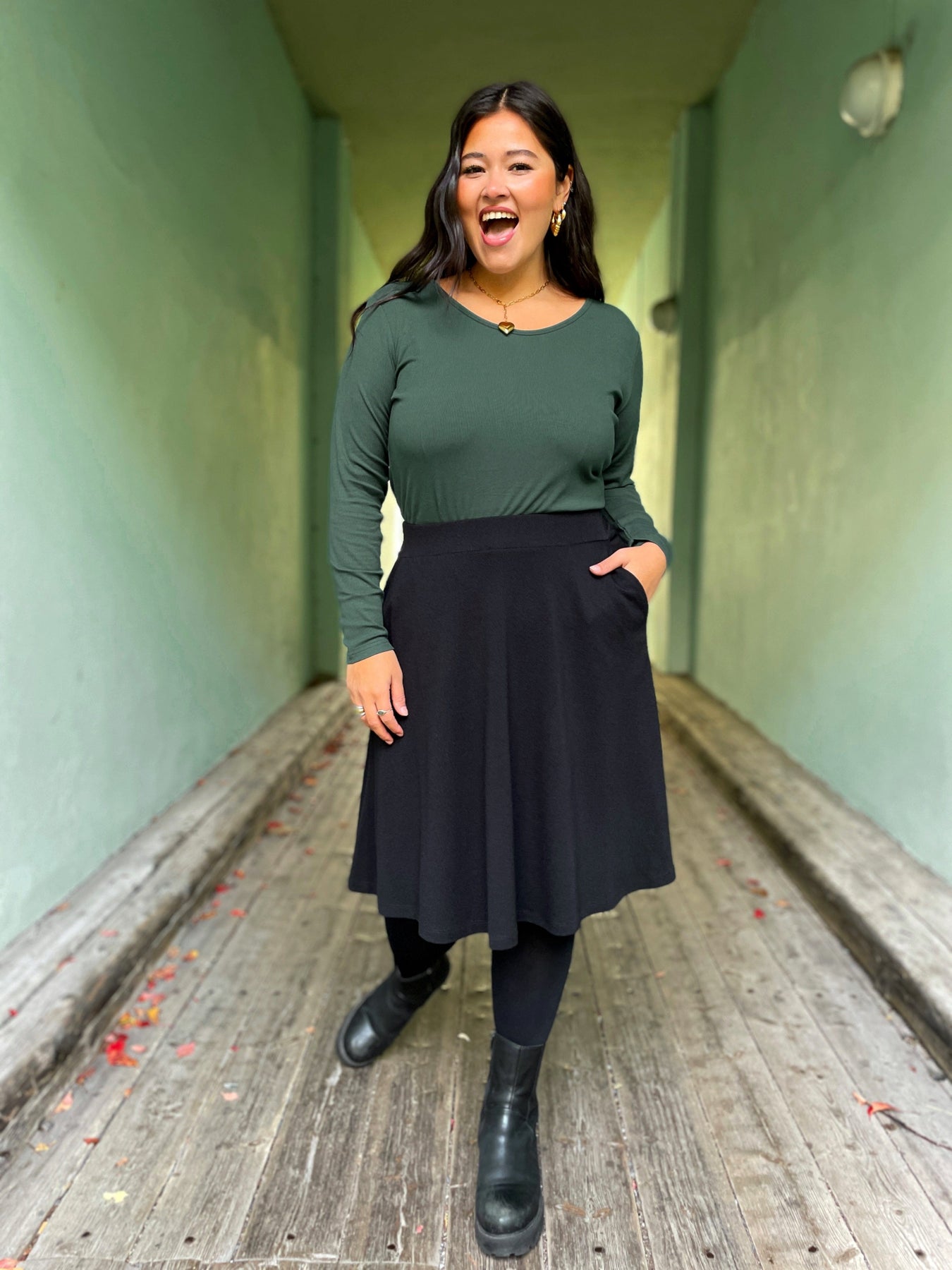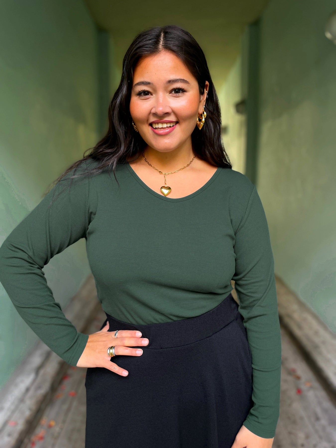 En ny overdel fra vårt eget merke! En enkel langermet topp med nydelig utringning - perfekt til basisgarderoben din! Viskosestoffet er mykt og deilig, holder seg pent i vask, og den dype grønnfargen er så anvendelig🥦! Vi har bodd i King Louies liknende topper i alle år, men vår egen versjon med tynne riller er enda mer elegant om vi må få si det selv, og vi har allerede flyttet inn i dette plagget for sesongen! Rib topp er selvfølgelig rettferdig sydd hos Fair & Square av damer med de samme rettighetene som deg og meg❤️
