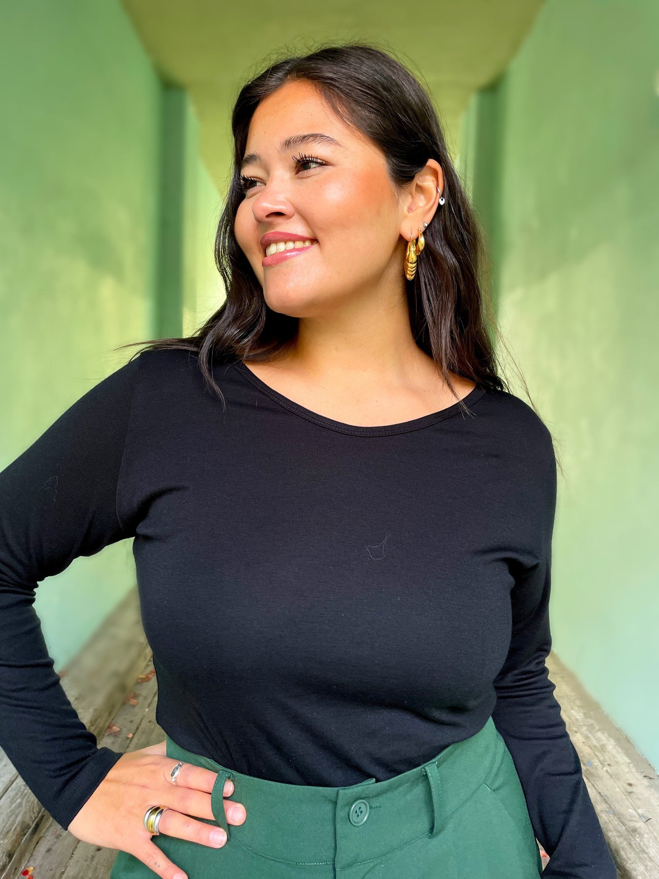 Stay Warm topp er tilbake i et litt fastere stoff🙌 Dette er toppen har vi savnet i vår egen garderobe! Utrolig myk og varmende i tencel og merinoull, med god stretch og uten irriterende blondedetaljer. Den perfekte toppen å bruke under bluser, kjoler og alle andre plagg for å holde deg lun og varm! Vi har passet på at v-utringningen i halsen er akkurat passe dyp slik at den ikke titter over blusekanten, og den er heller ikke for dyp for deg med stor byste. Vi bruker våre egne i dager og uker uten å vaske dem fordi både ull og tencel har så gode fuktabsorberende og antibakterielle egenskaper! Null lukt i disse trøyene!